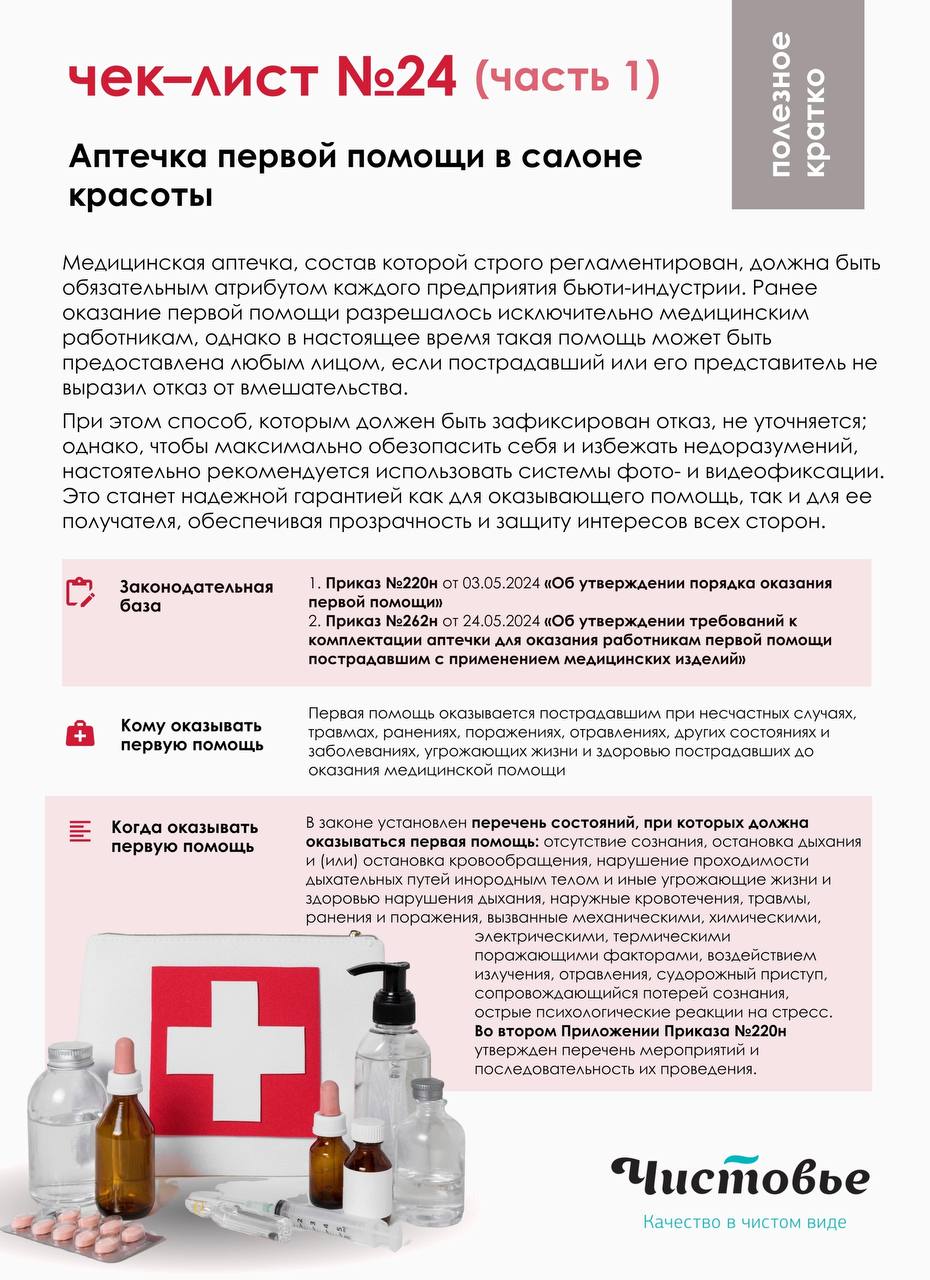 В салоне красоты наличие укомплектованной аптечки и знание персоналом основ первой помощи – залог безопасности и доверия клиентов, значительно снижающие риски возникновения чрезвычайных ситуаций. Крайне важно не допускать к работе сотрудников с признаками инфекционных заболеваний и отказывать в процедурах клиентам с симптомами ОРВИ или кожными заболеваниями. Регулярные медосмотры – гарантия выявления проблем со здоровьем на ранней стадии.