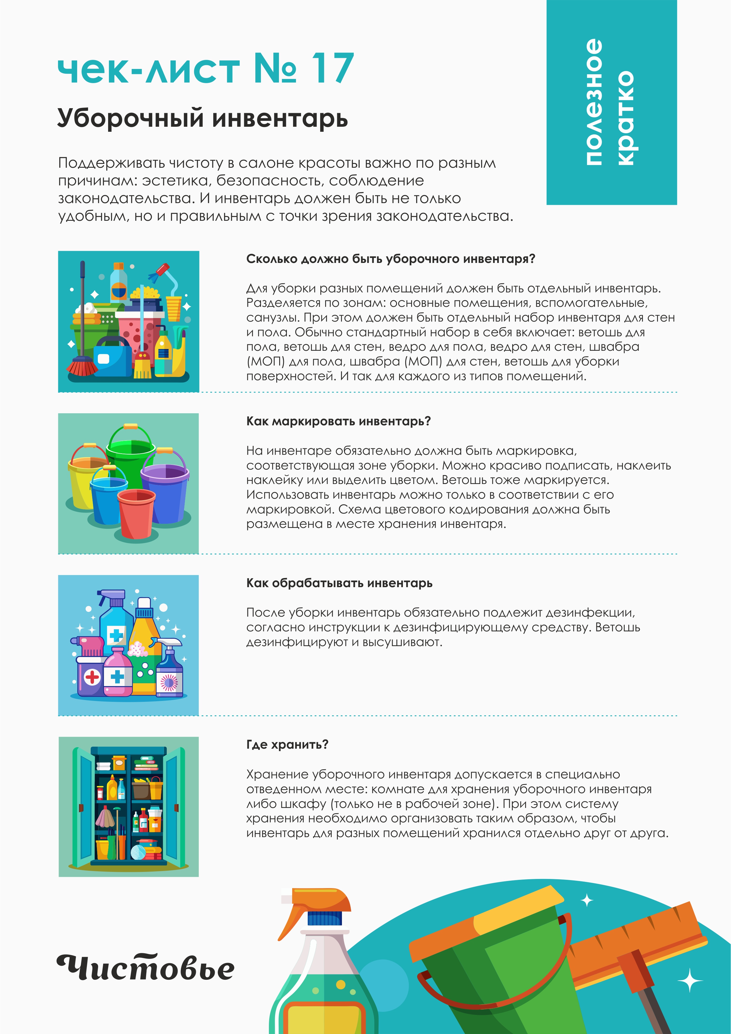 Шкафчики и полки. Для удобного хранения инвентаря и материалов.
