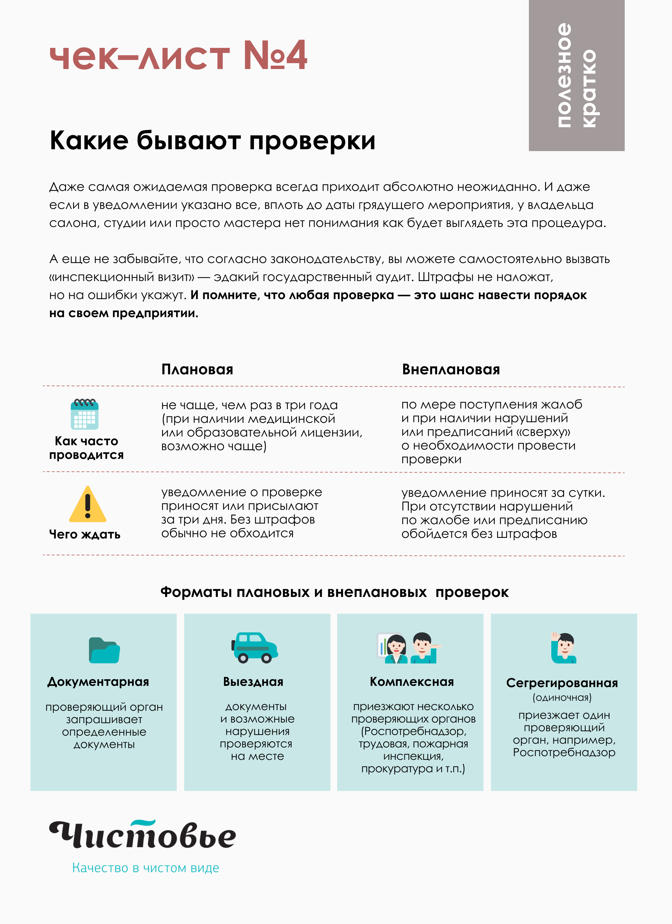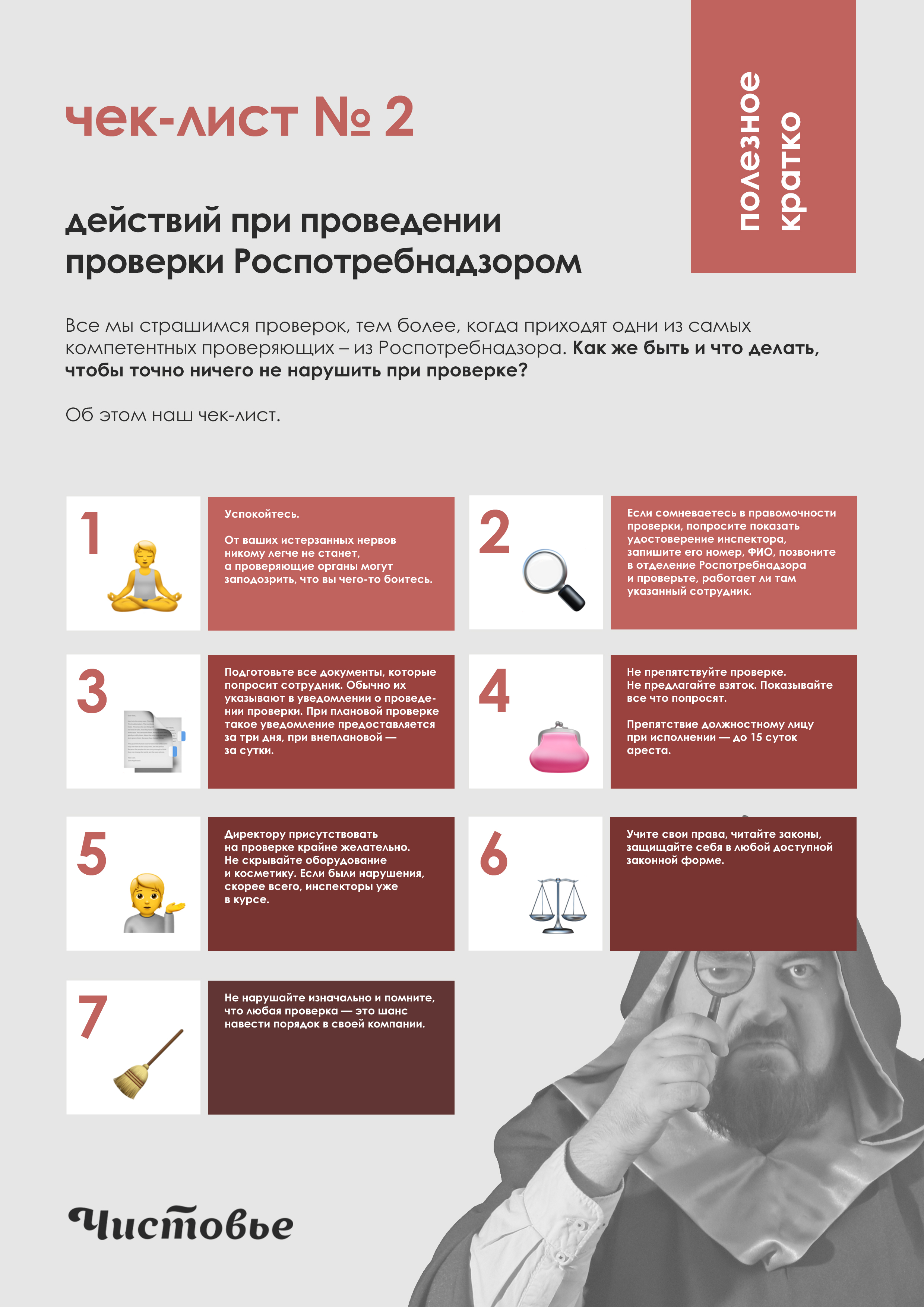 Со своей стороны напомним, что мораторий на плановые проверки действует до 2030 года, но это не означает, что проверок не было и нет. Остаются внеплановые проверки, выборочный контроль, профилактические визиты, контрольные закупки и другие виды проверок соблюдения санитарно-противоэпидемического законодательства.