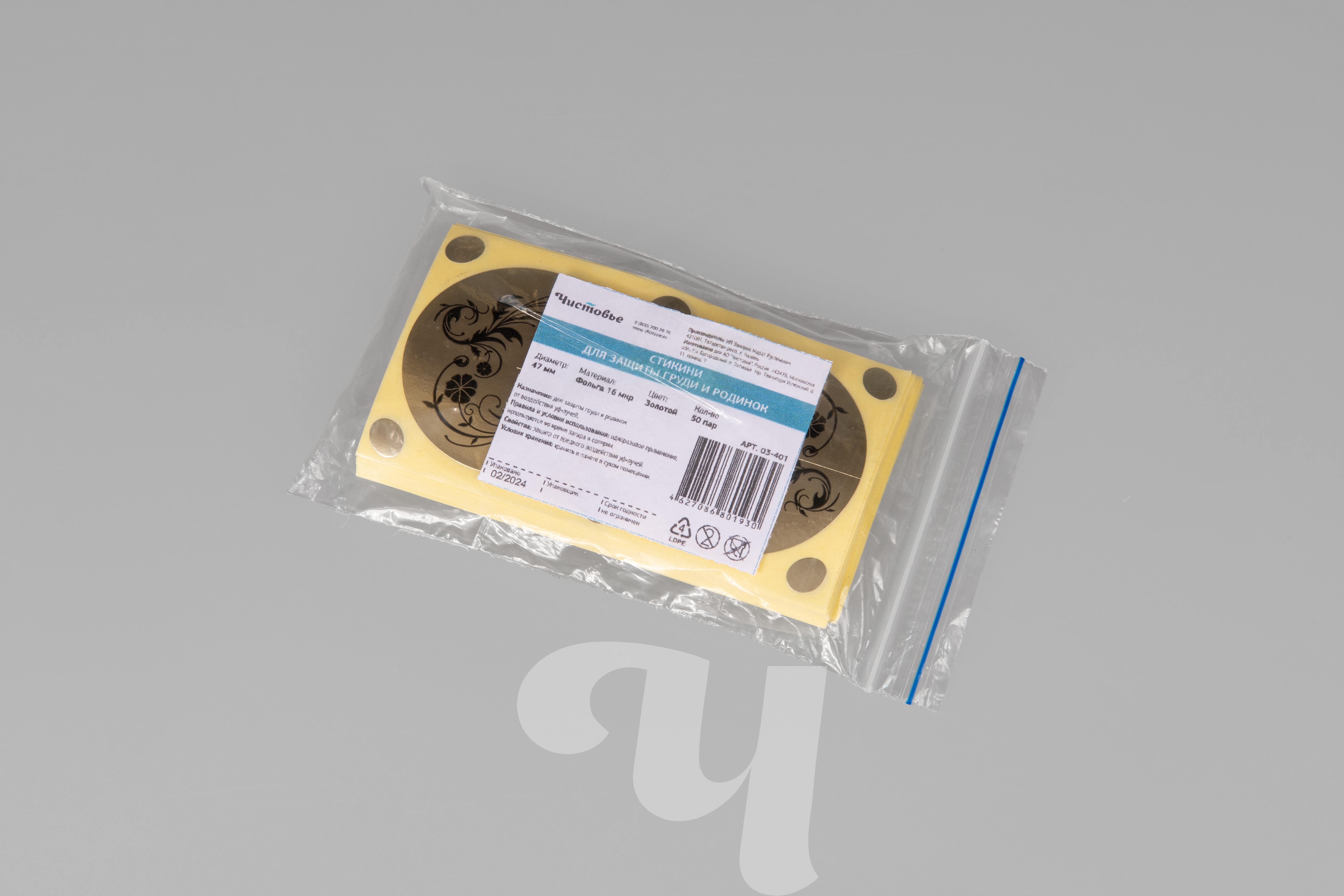 Комплект самоклеящихся накладок на грудь и родинки. Используются для защиты ареолы груди от негативного воздействия УФ-излучения. Диаметр - 47 мм.