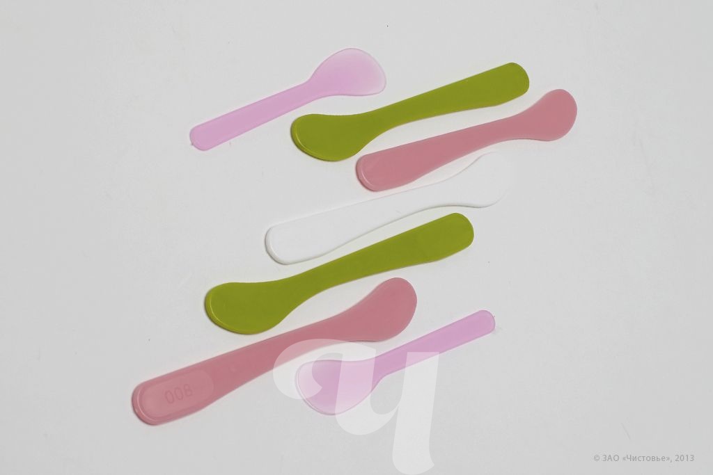 Пластиковые шпатели используются в косметологии для дозирования и гигиеничного использования косметических средств. После каждого использования подлежат дезинфекции.