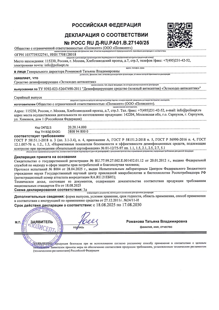 Спиртовой кожный антисептик предназначен для гигиенической обработки рук, а также кожи инъекционного поля. Кроме того, подходит для обработки ступней с целью профилактики грибковых заболеваний. Обладает высокой антимикробной активностью, не вызывает аллергии, сухости и раздражения кожи. В качестве действующих веществ содержит: изопропиловый спирт (2-пропанол) (48,0 ± 1,0%); н-пропиловый спирт (1-пропанол) (12,0 ± 1,0%); цетримоний хлорид (гексадецилтриметиламмоний хлорид - ЧАС) (0,25 ± 0,01%). Имеет пролонгированное действие не менее 3 часов, не требуется частое мытье рук. Емкости на выбор: 200 мл в виде удобного спрея, 1 и 5 л - для экономичного использования. Спиртовой антисептик Эстилодез используется в соответствии с инструкцией по применению. Ознакомиться с инструкцией по применению антисептика Эстилодез можно на нашем сайте.