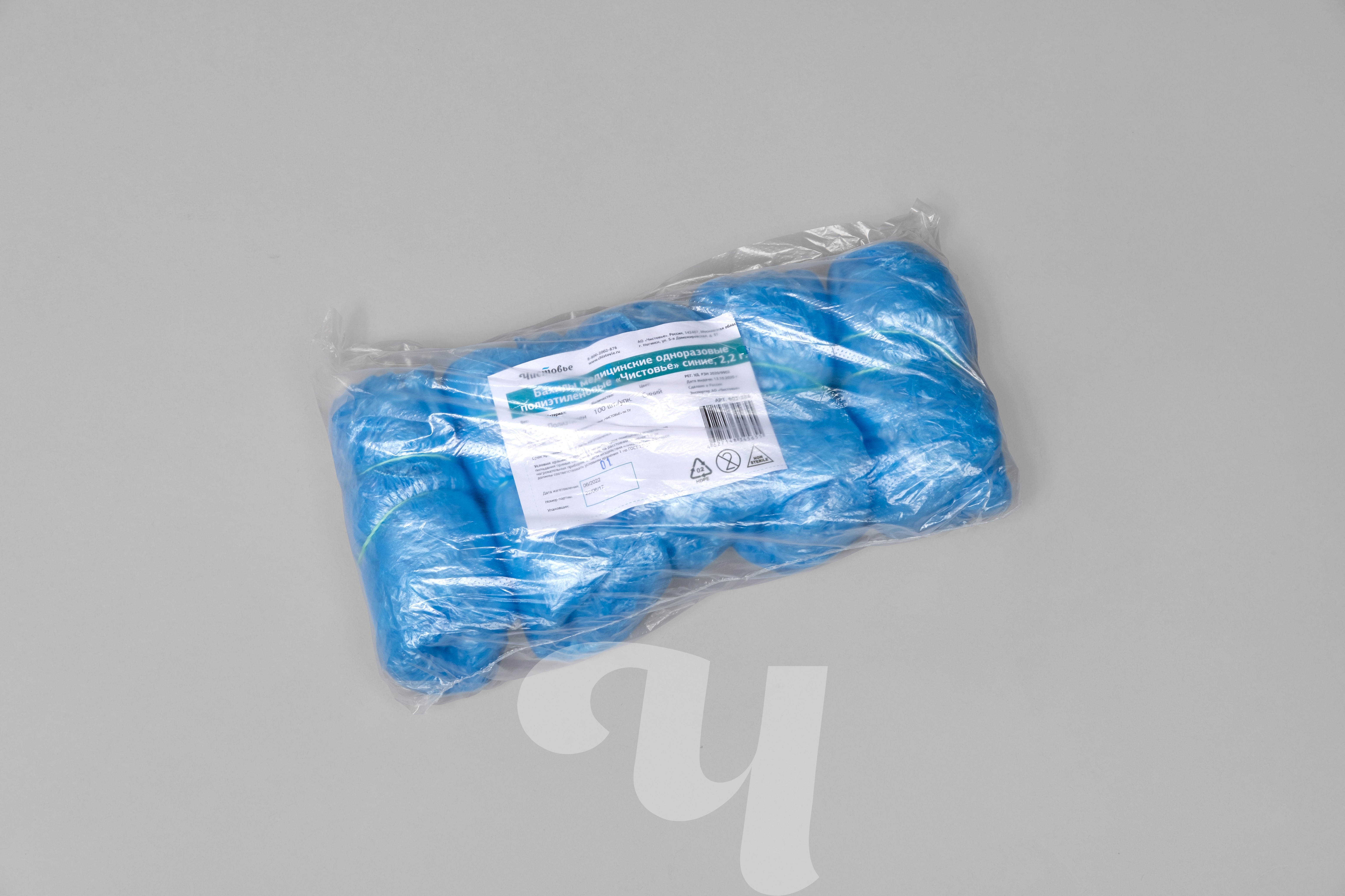 Бахилы медицинские 2,2 г, ПНД, 9-11 мкм, синий, 100 шт/упк