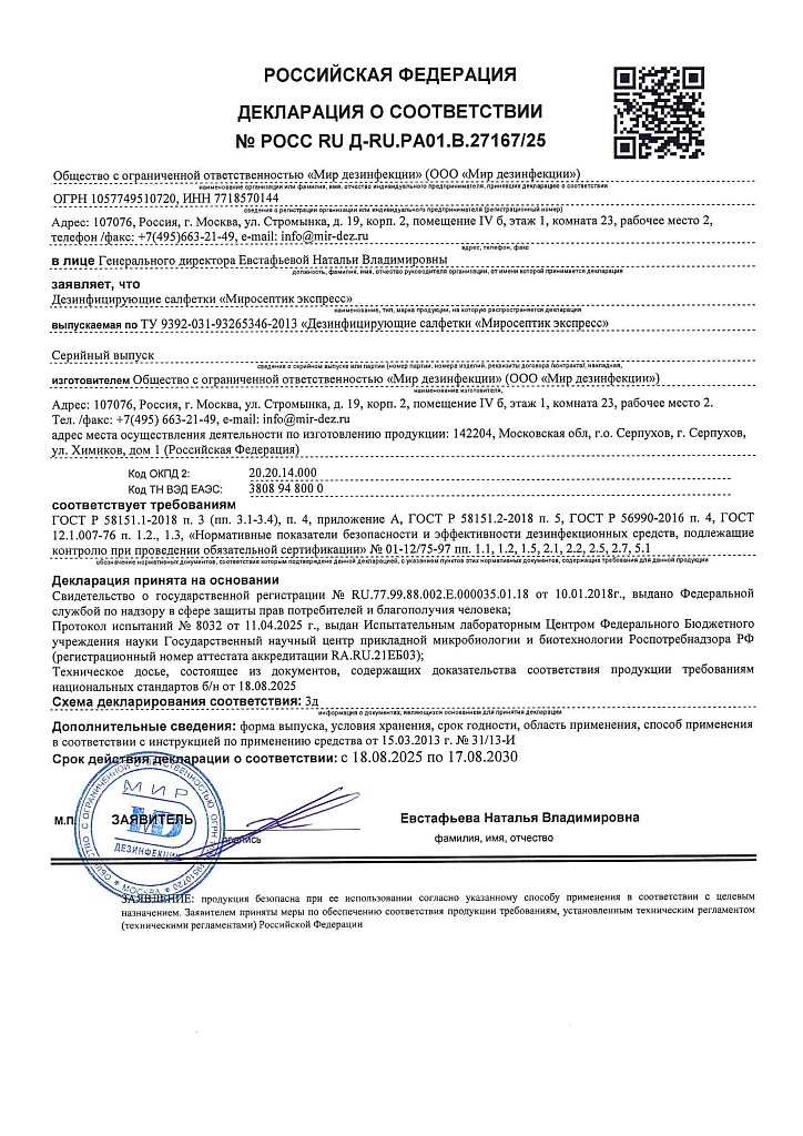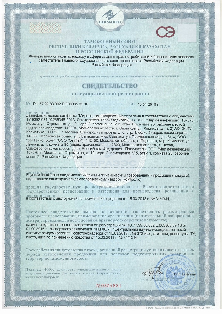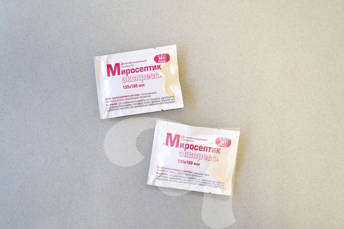 Дезинфицирующие салфетки «Миросептик экспресс» пропитаны специальным составом с повышенным содержанием спирта, что важно в период обострения вирусных инфекций. Салфетки обладают антимикробной активностью (включая микобактерии туберкулеза), активны в отношении вирусов (в том числе гепатитов, ВИЧ-инфекции), а также патогенных грибов. «Миросептик экспресс» универсальны и используются для обработки кожи операционного и инъекционного поля; для обработки перчаток, надетых на руки персонала; для обработки (дезинфекции) небольших рабочих поверхностей, медицинских приборов (ни в коем случае не инструментов); для профилактической обработки ступней ног. Экспресс обработка операционного поля, локтевых сгибов доноров за 1 мин. Экспресс обработка поверхностей от 30 сек. до 5 мин. Размер: 135х180 мм. Дезинфицирующие салфетки "Миросептик экспресс" используются в соответствии с инструкцией по применению. Ознакомиться с инструкцией по применению можно на нашем сайте.
