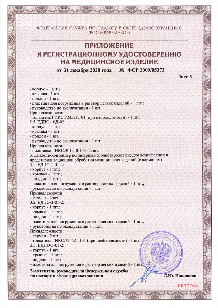 Профессиональное оборудование для соблюдения дезрежима. Ванночка предназначена для дезинфекции и предстерилизационной обработки медицинских, косметологических и других профессиональных инструментов методом погружения в дезраствор. Изготовлена из химически стойкого материала. Поставляется в комплекте с перфорированным поддоном. Представлена в трех объемах: 1 л (внутренний размер: 145х112х70 мм, диагональ 205 мм), 3 л ( внутренний размер 205х160х100 мм, диагональ 300 мм) и 5 л (внутренний размер: 255х200х125 мм, диагональ 375 мм).