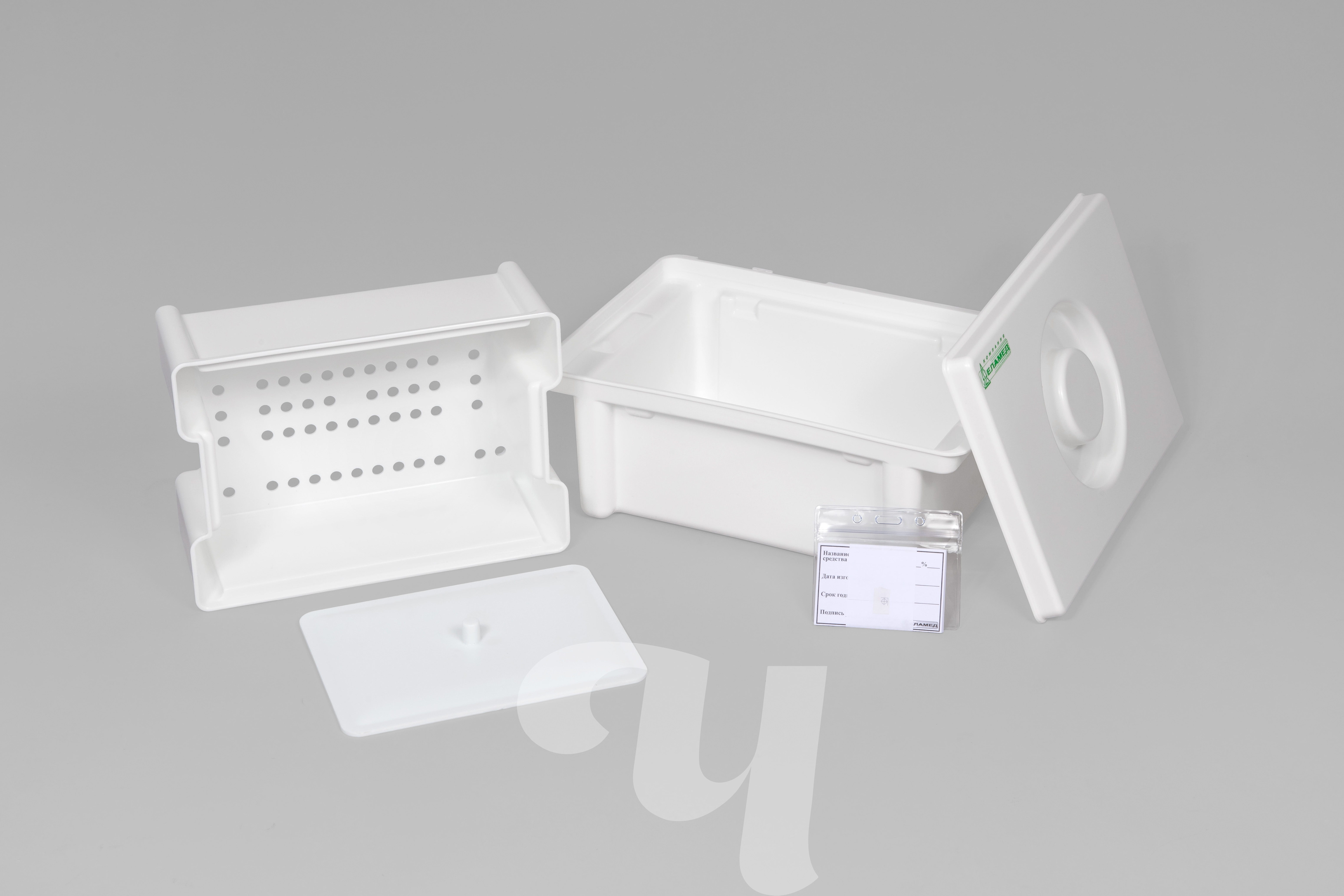 Профессиональное оборудование для соблюдения дезрежима. Ванночка предназначена для дезинфекции и предстерилизационной обработки медицинских, косметологических и других профессиональных инструментов методом погружения в дезраствор. Изготовлена из химически стойкого материала. Поставляется в комплекте с перфорированным поддоном. Представлена в трех объемах: 1 л (внутренний размер: 145х112х70 мм, диагональ 205 мм), 3 л ( внутренний размер 205х160х100 мм, диагональ 300 мм) и 5 л (внутренний размер: 255х200х125 мм, диагональ 375 мм).