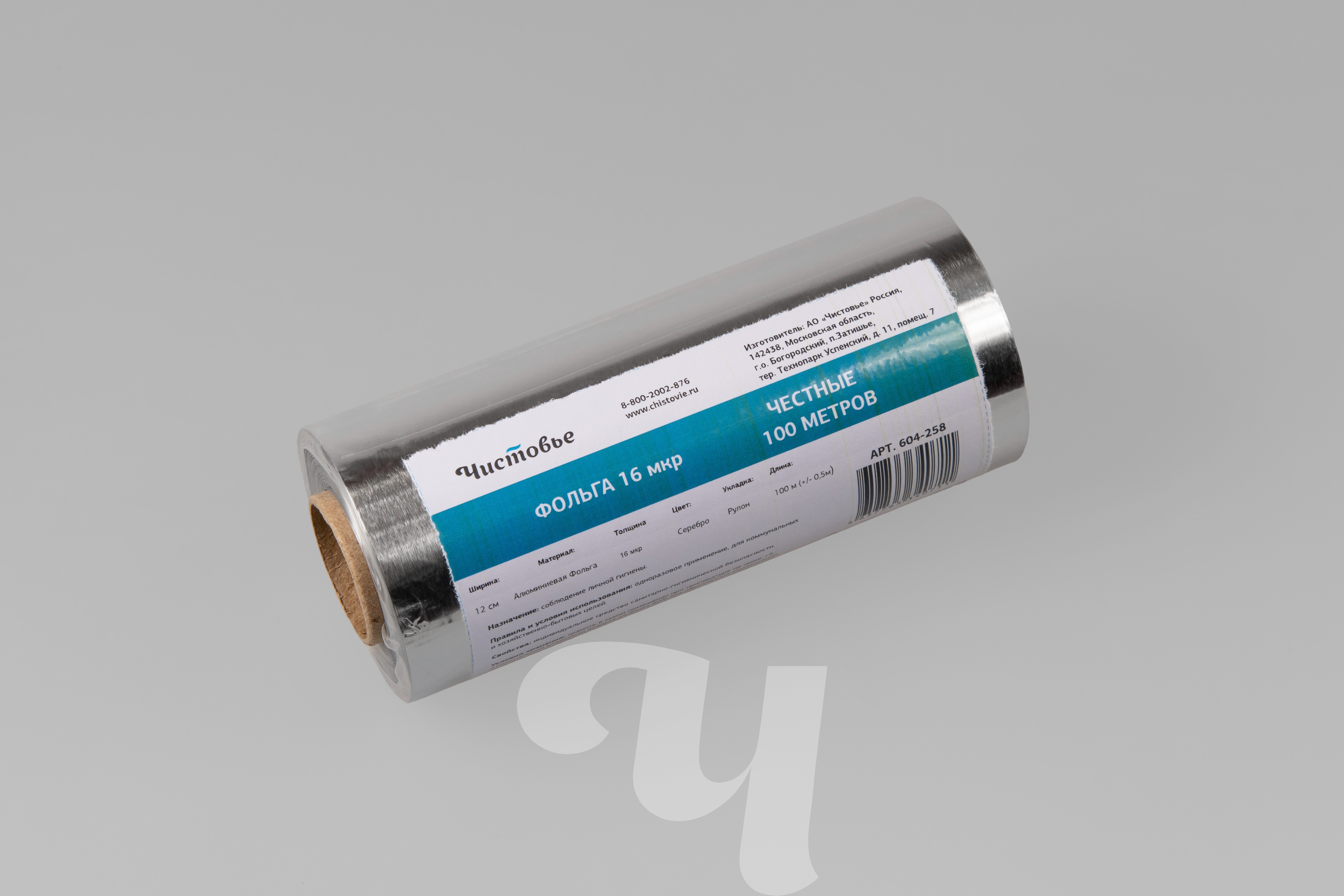 Фольга 16 мкм, 12 см х 100 м, Серебро, 1 шт/упк