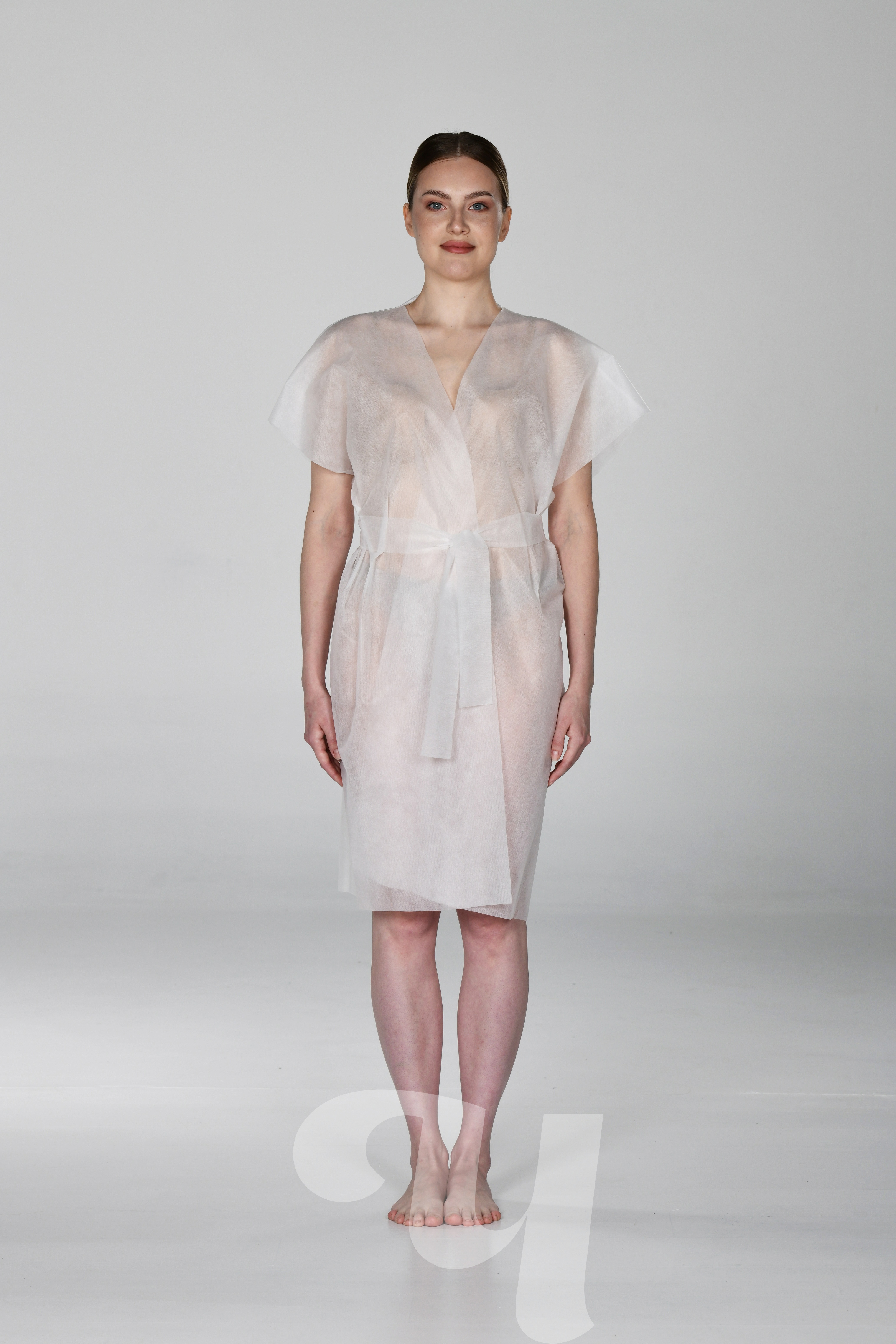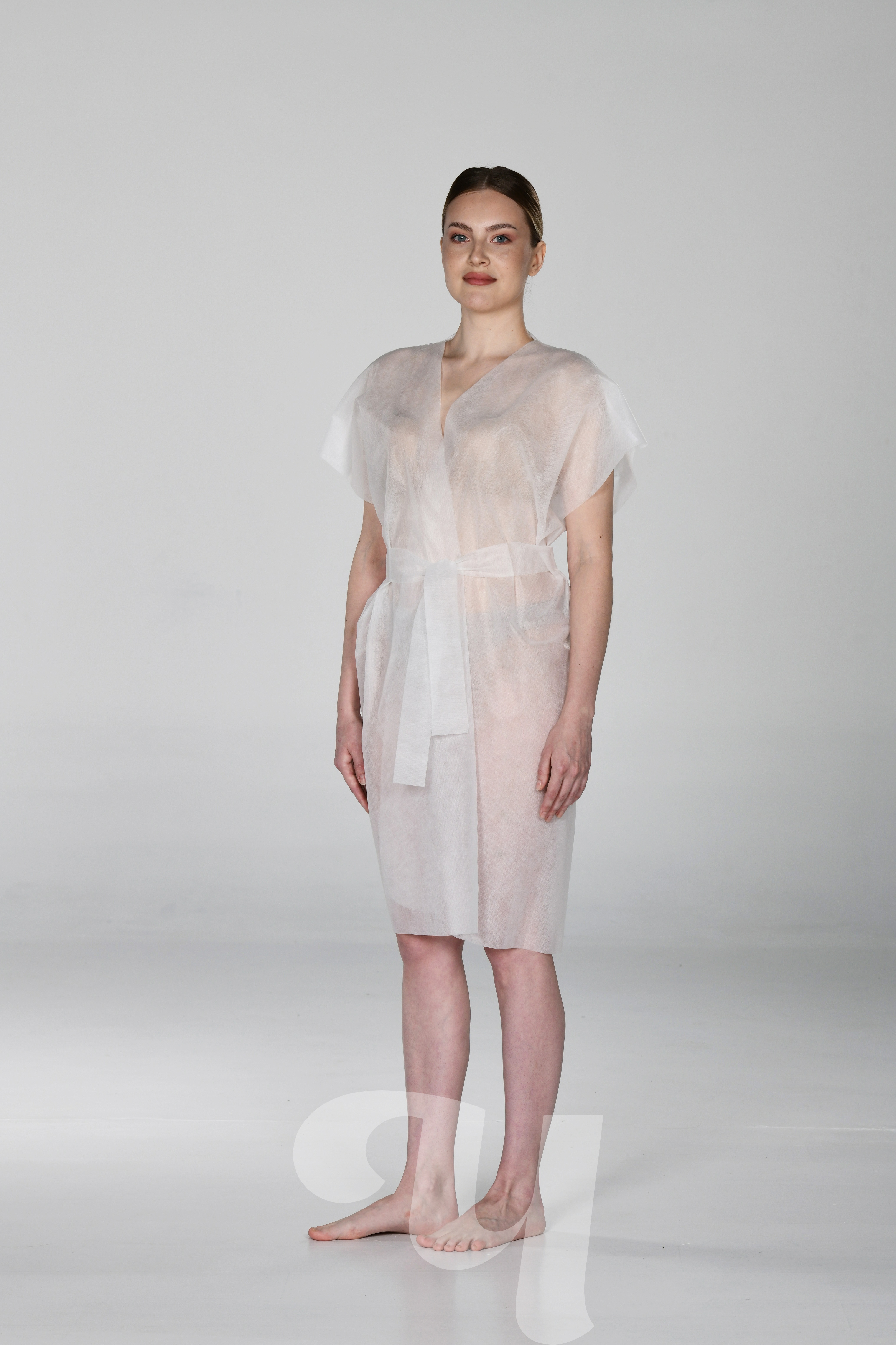 Главная  Каталог одноразовой продукции  Расходные материалы  Расходные материалы и одежда для процедур  Халаты  Халат-кимоно из SMS без рукавов с поясом, универсальный, белый, 10 шт/упк