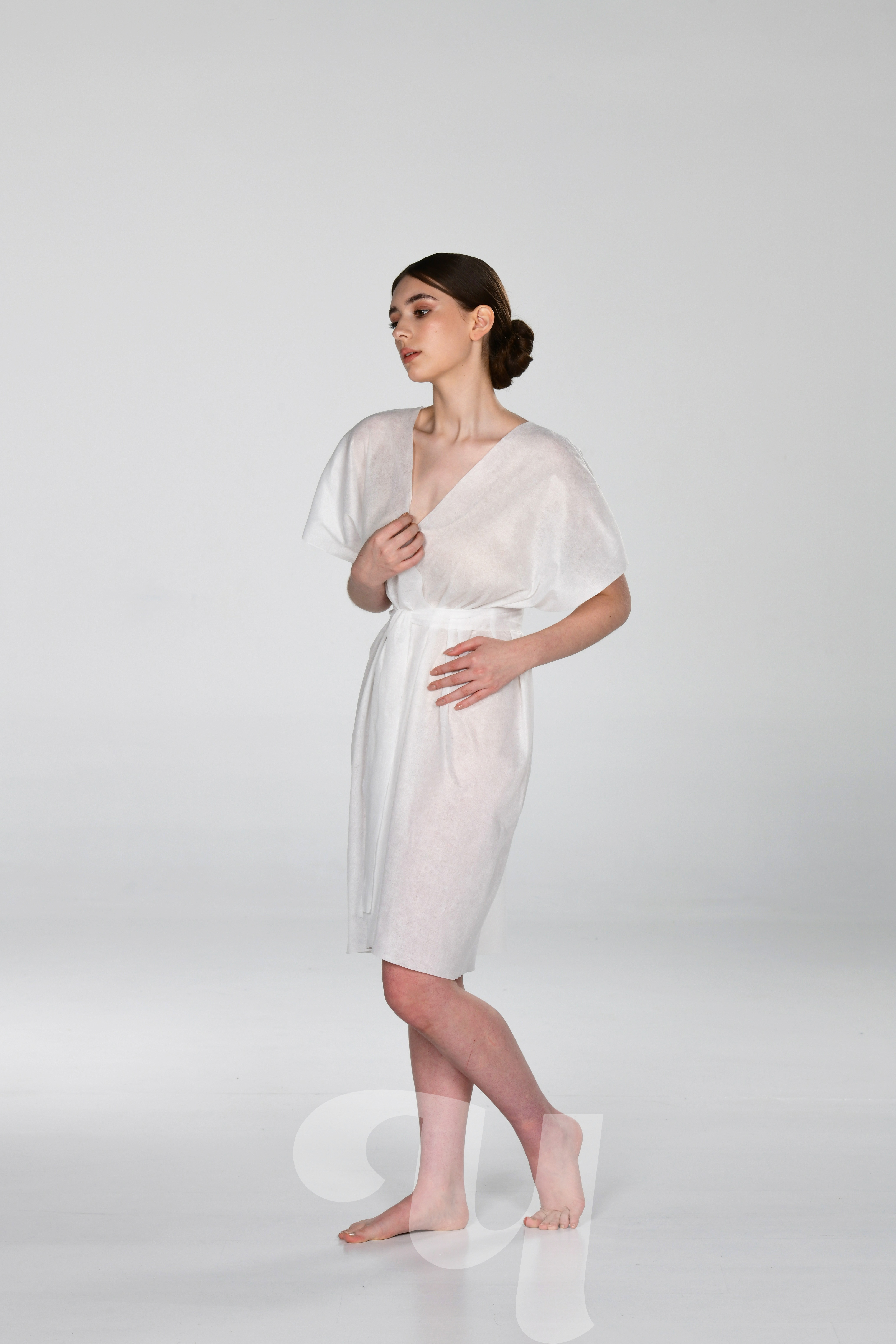 Главная  Каталог одноразовой продукции  Расходные материалы  Расходные материалы и одежда для процедур  Халаты  Халат-кимоно из спанлейса без рукавов с поясом, универсальный, белый, 10 шт/упк