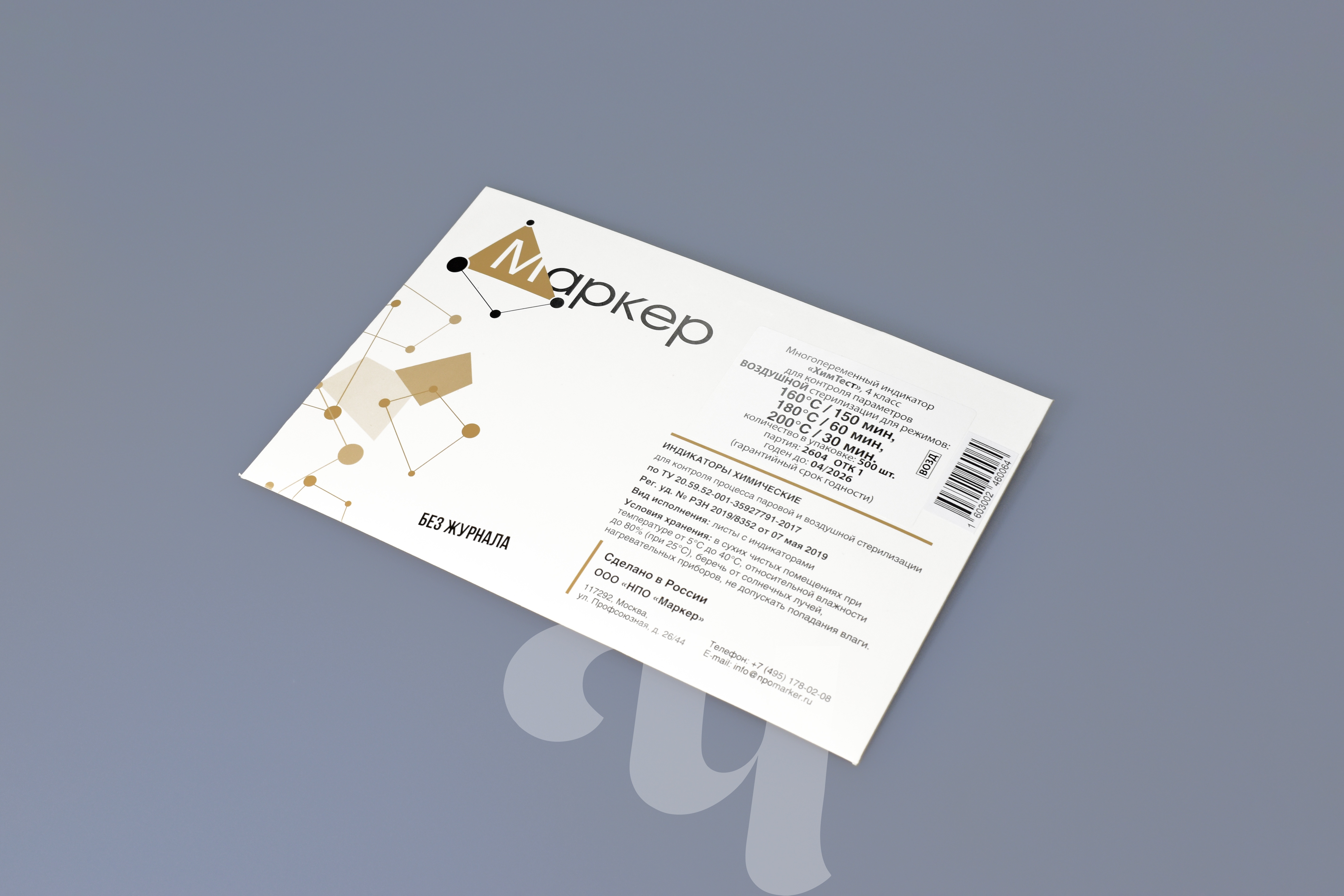 Многопеременный индикатор «ХимТест» предназначен для оперативного визуального контроля процесса воздушной стерилизации с липким слоем для фиксации в месте контроля и документе архива. Индикаторы относятся к 4 классу и предназначены для контроля параметров режимов стерилизации в воздушных стерилизаторах (160°С/150 мин, 180°С/60 мин, 200°С/30 мин). Закладку индикатора можно производить как в контрольные точки камеры стерилизатора, так и в индивидуальные упаковки, наборы, закладки и т.д. с изделиями. После прохождения цикла стерилизации цвет индикаторной метки необратимо изменяется на цвет эталона сравнения. Срок годности: 60 месяцев. Поставляются комплектами по 500 тестов без журнала. Является изделием медицинского назначения. Регистрационные удостоверения: РЗН 2019/8352 от 07 мая 2019 г., ТУ 20.59.52-001-35927791-2017.
