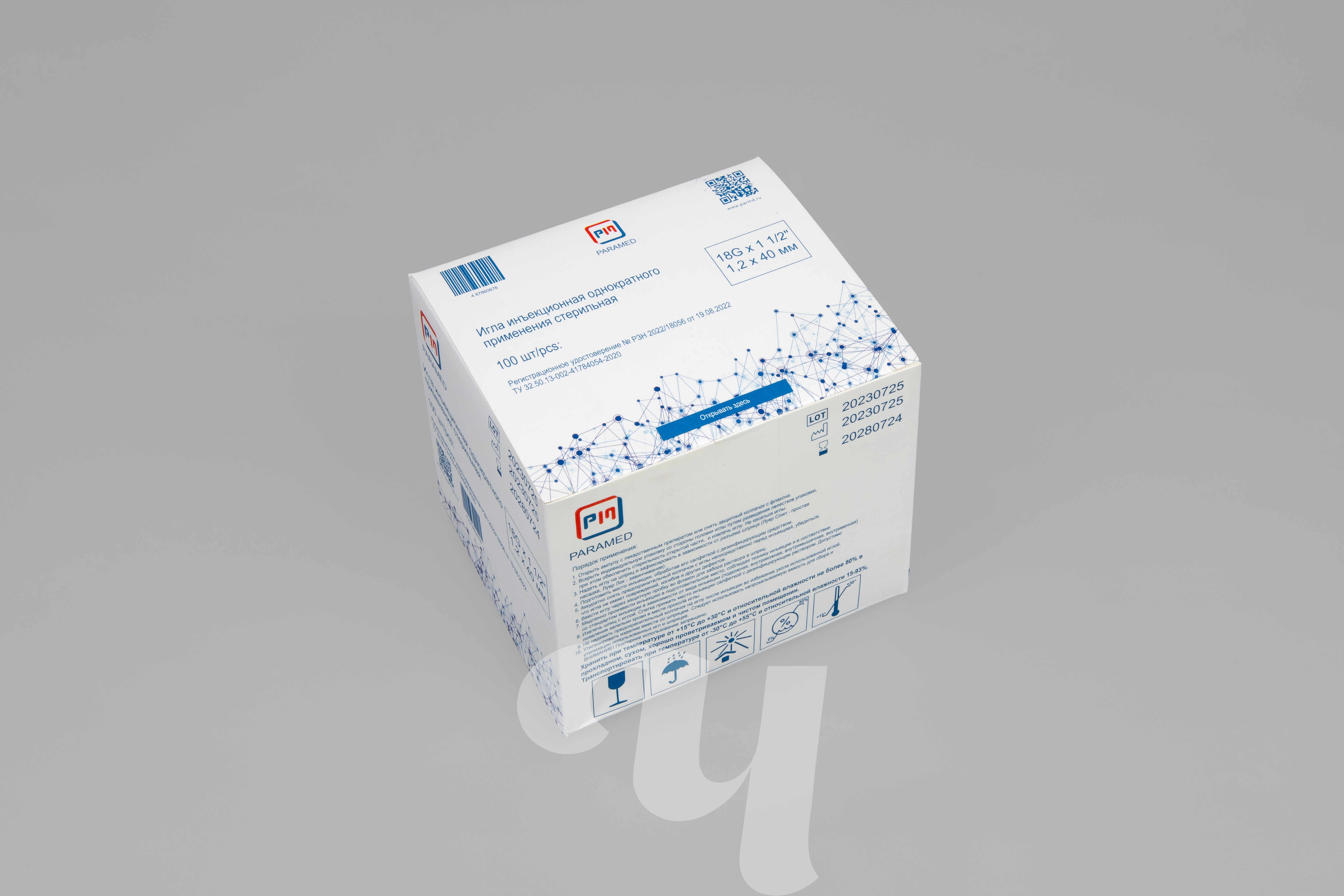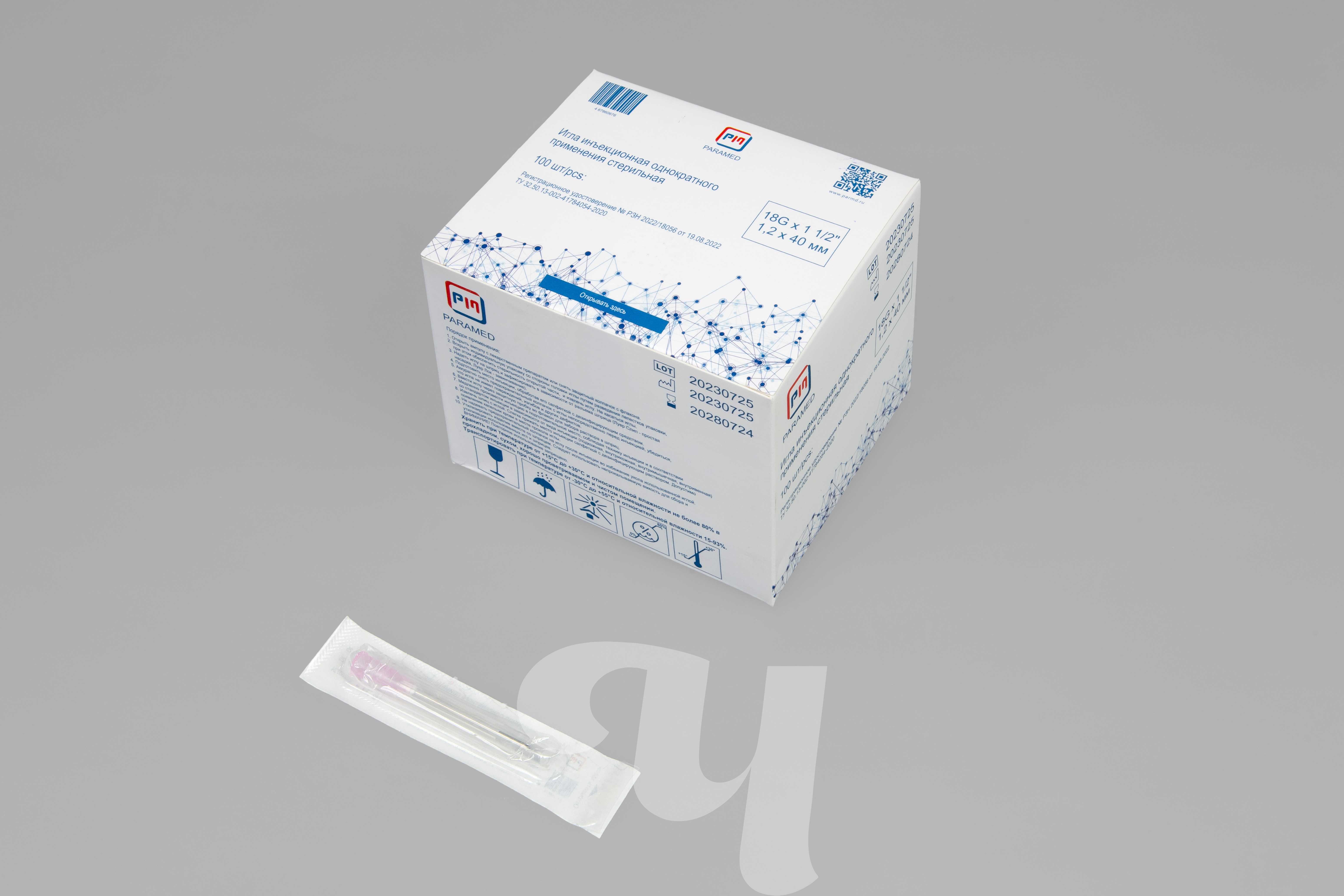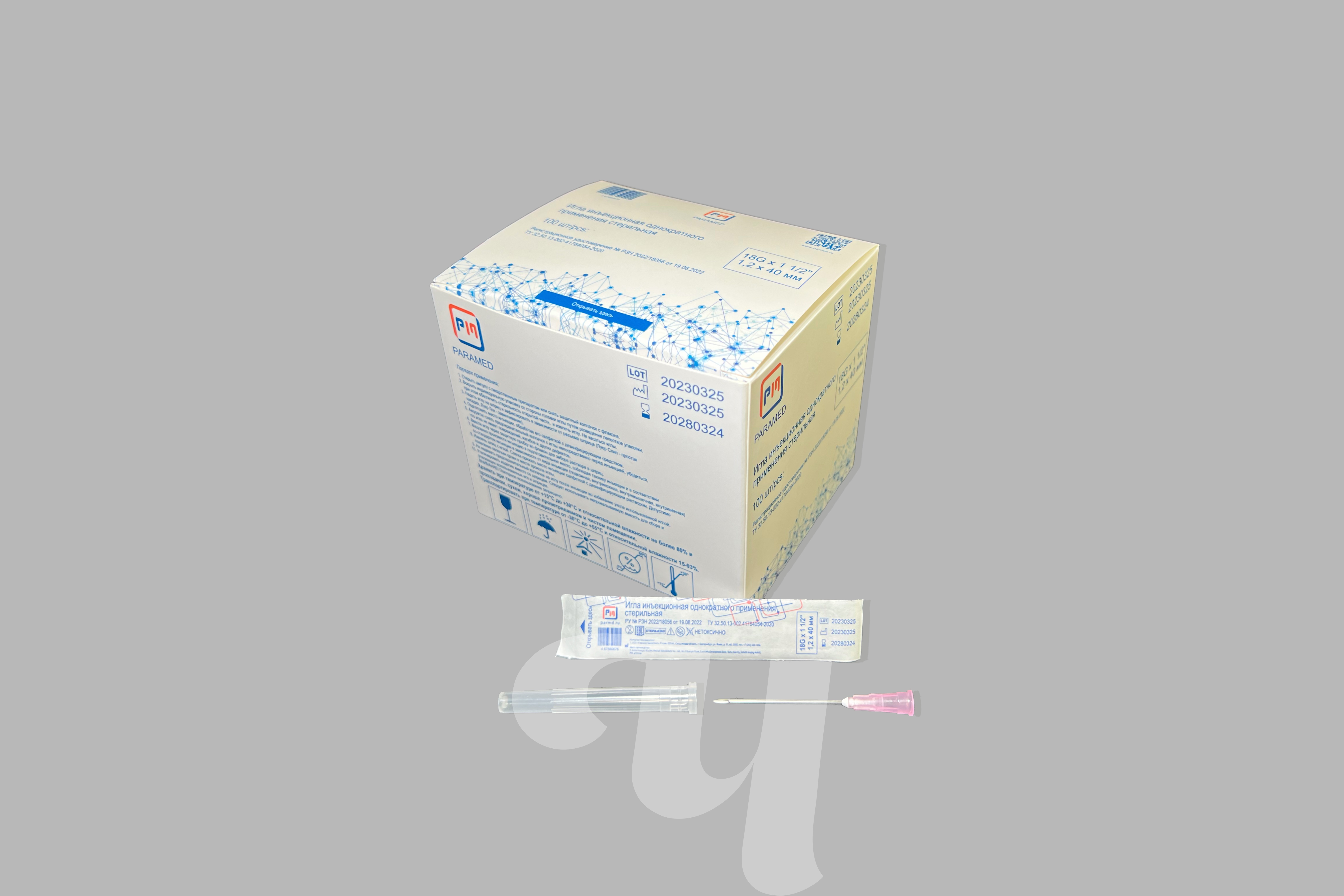 Игла медицинская инъекционная, 18G х 40 мм, 100 шт/упк