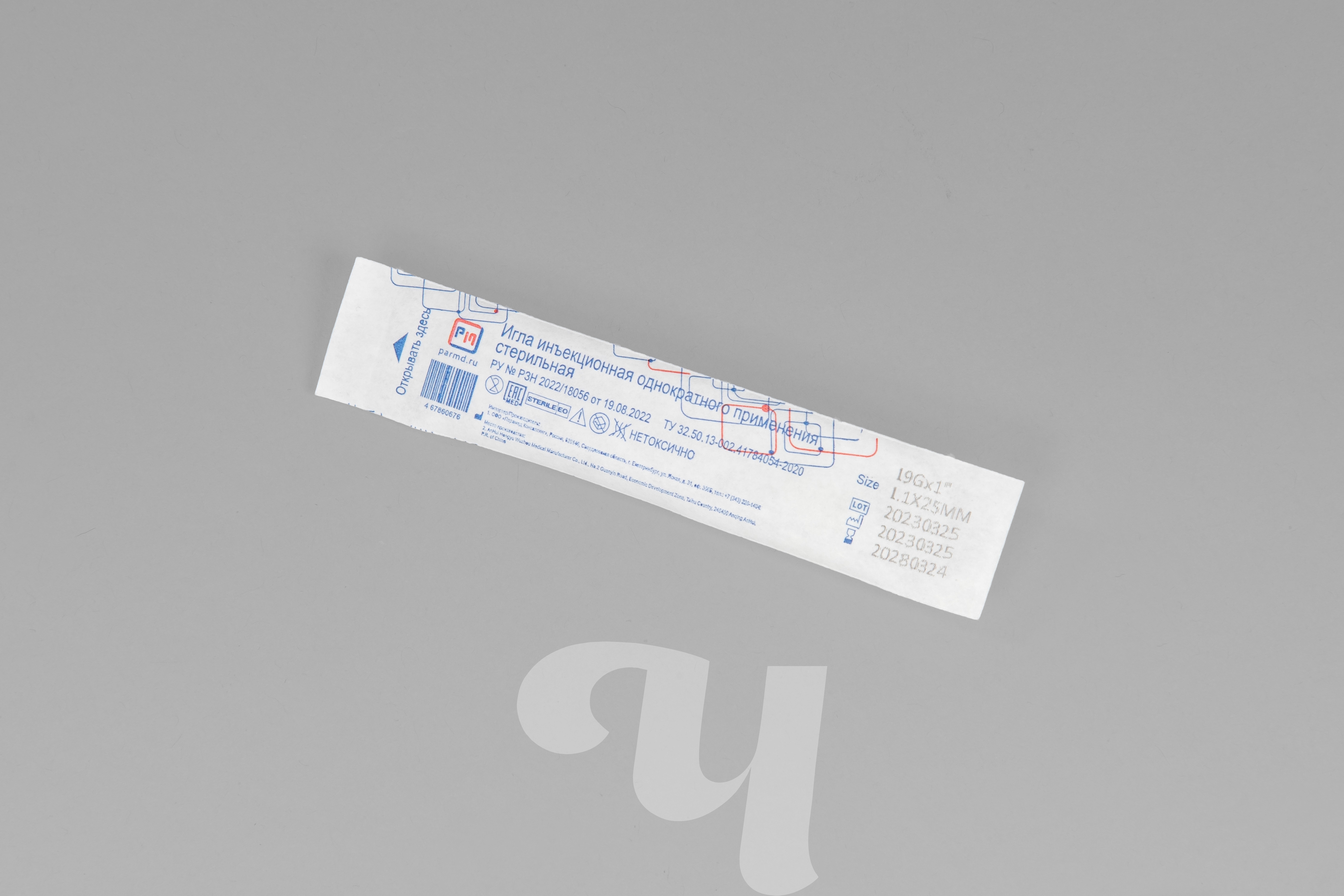 Игла медицинская инъекционная, 19G x 25 мм, 1 шт/упк