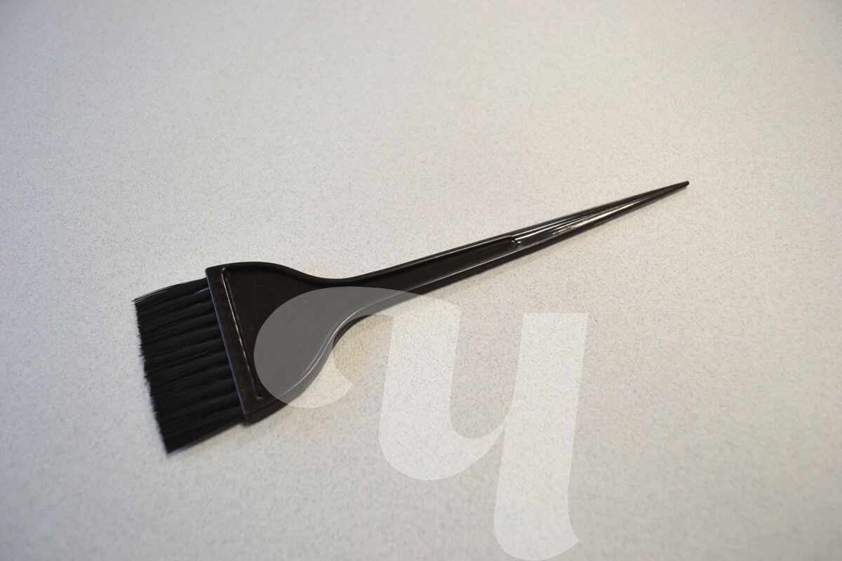 Кисть №13 для окрашивания волос из твёрдого пластика с искусственной щетиной.