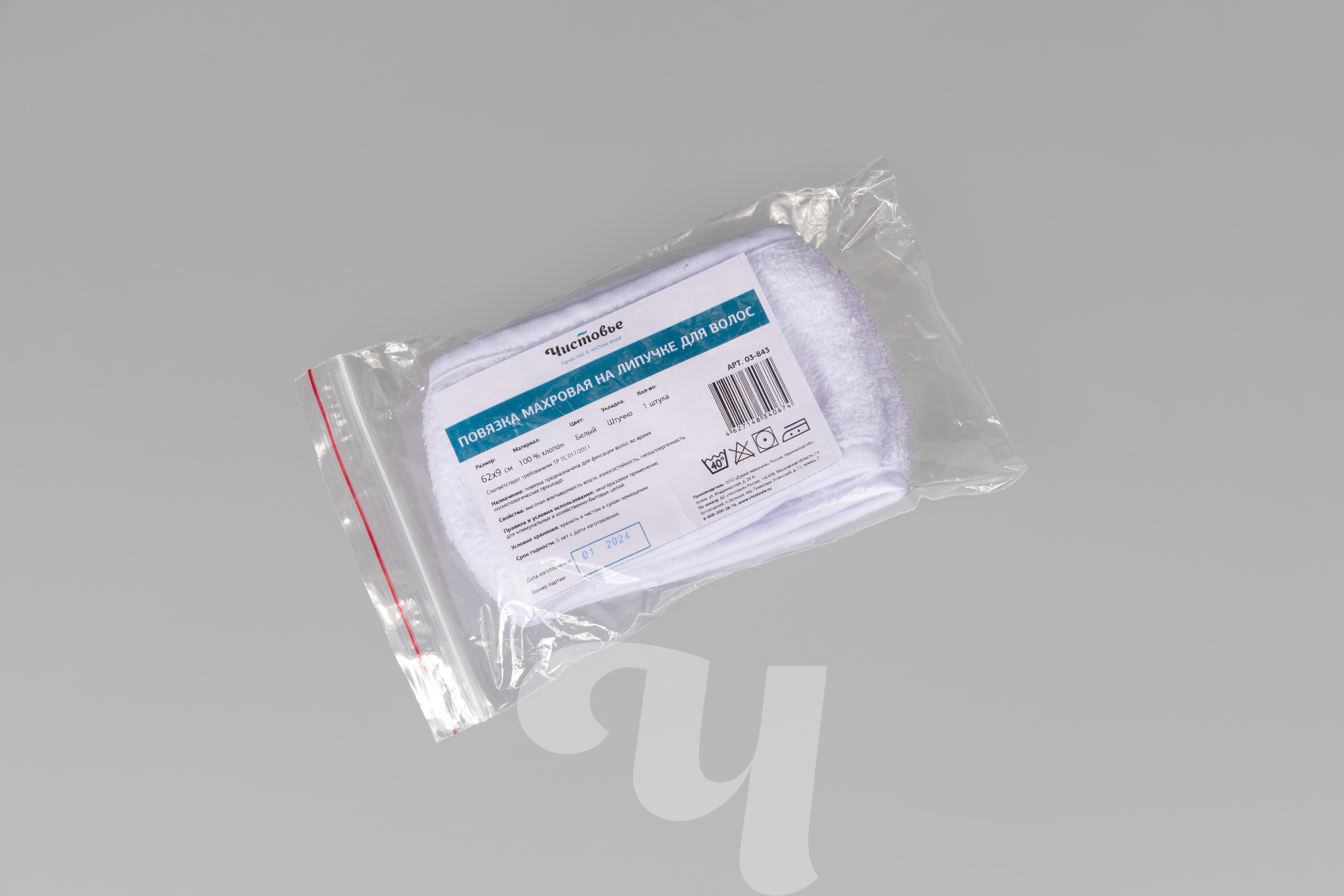 Главная  Каталог одноразовой продукции  Расходные материалы  Расходные материалы для головы  Одноразовые шапочки для волос  Повязка для волос махровая на липучке, 9х62 см, Белый, 1 шт/упк