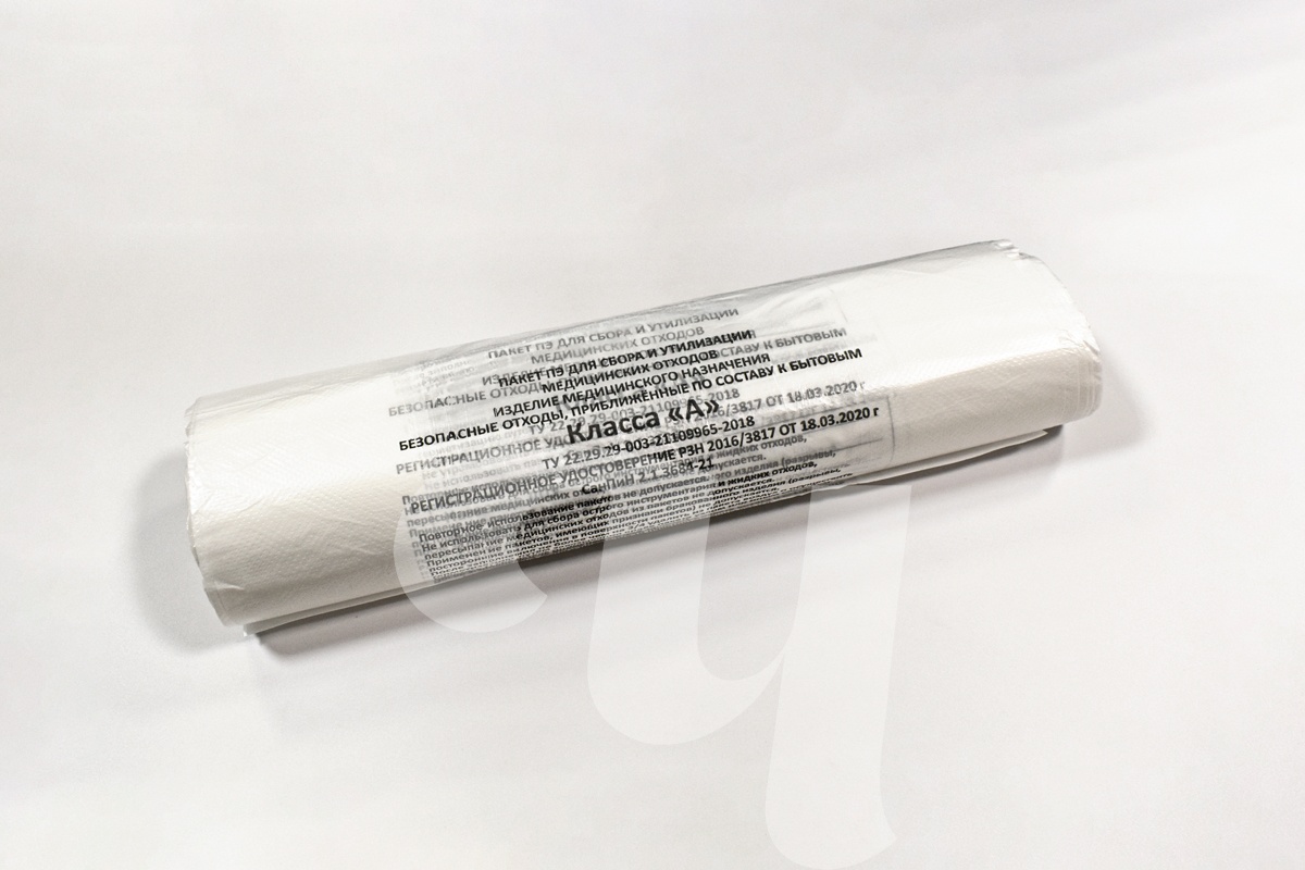 Медицинские пакеты класса А (белые) применяются для сбора неопасных отходов, не имевших контакта с биологическими жидкостями клиентов. Используются в медицинских учреждениях и салонах красоты, имеющих медицинскую лицензию. Толщина полиэтилена - 14 мкм.