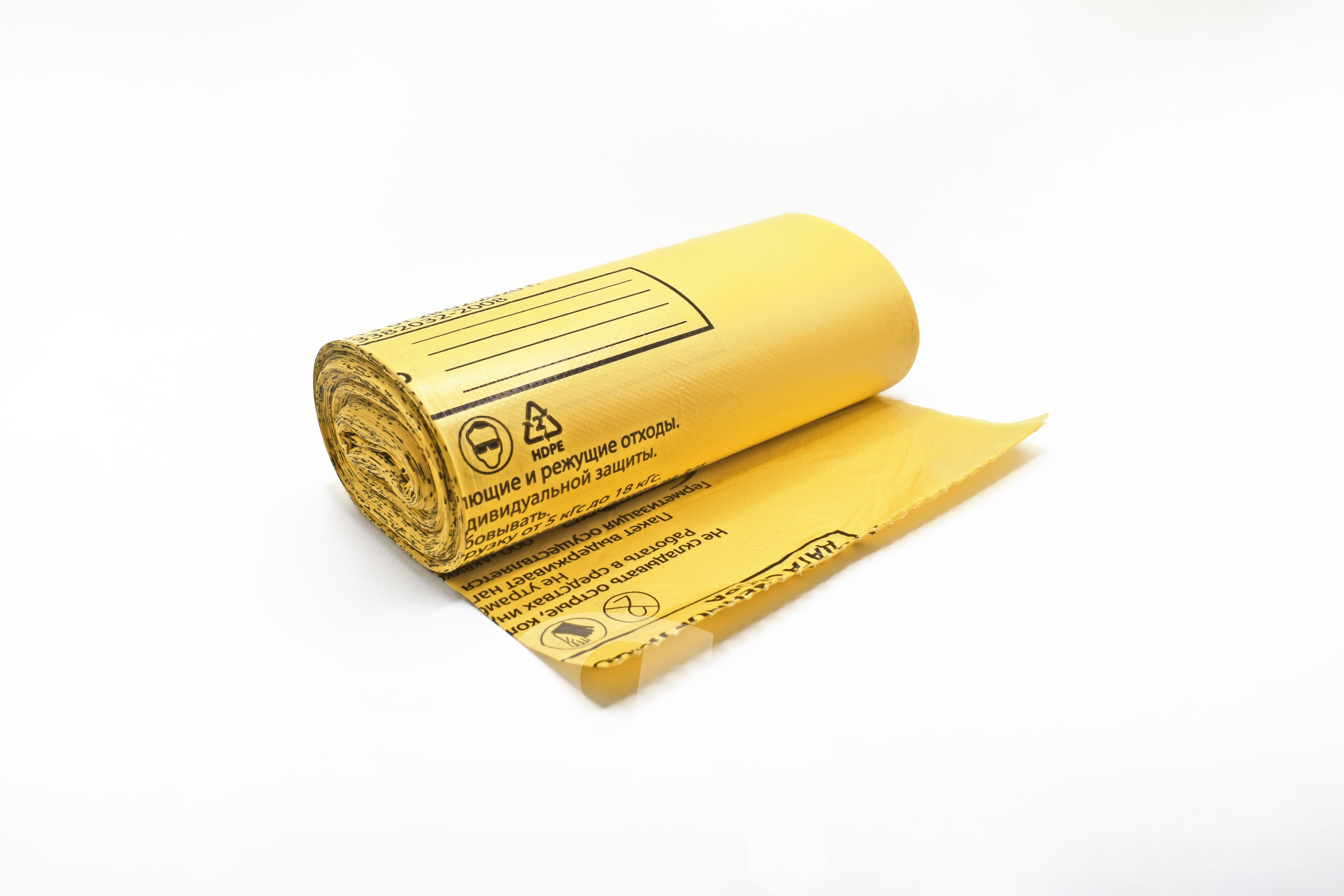 Пакеты класса Б (желтые) используются для сбора, хранения и утилизации потенциально инфицированных отходов - материалов и инструментов, загрязненных биологическими выделениями, в том числе кровью. Используются в медицинских учреждениях, а также в салонах красоты, имеющих медицинскую лицензию. Толщина полиэтилена - 14 мкм.