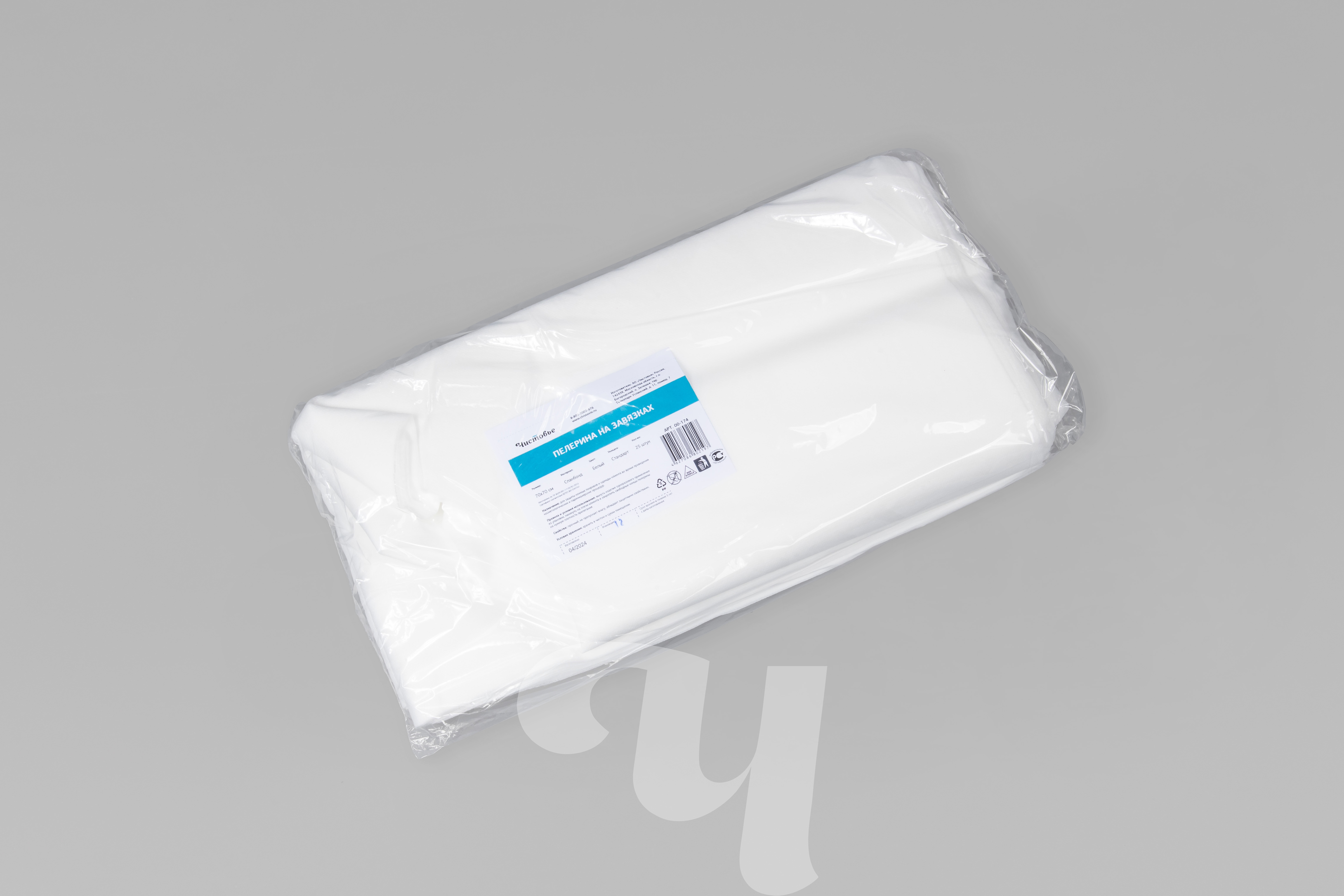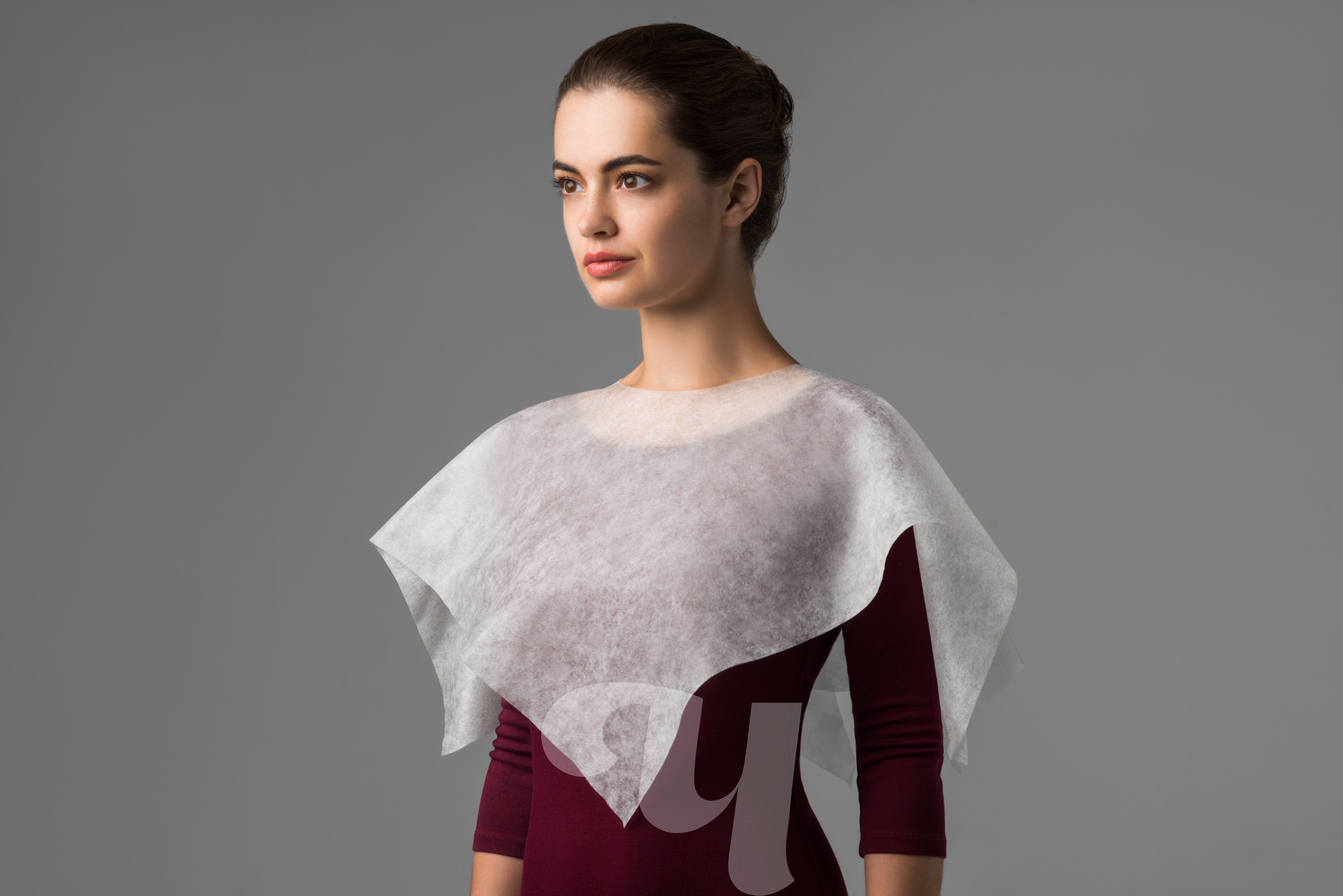 Пелерины из спанбонда на завязках. Защищают верхнюю часть тела и одежду. Используются при создании макияжа и прически, окрашивании бровей и ресниц, во время косметологических и других бьюти-процедур.