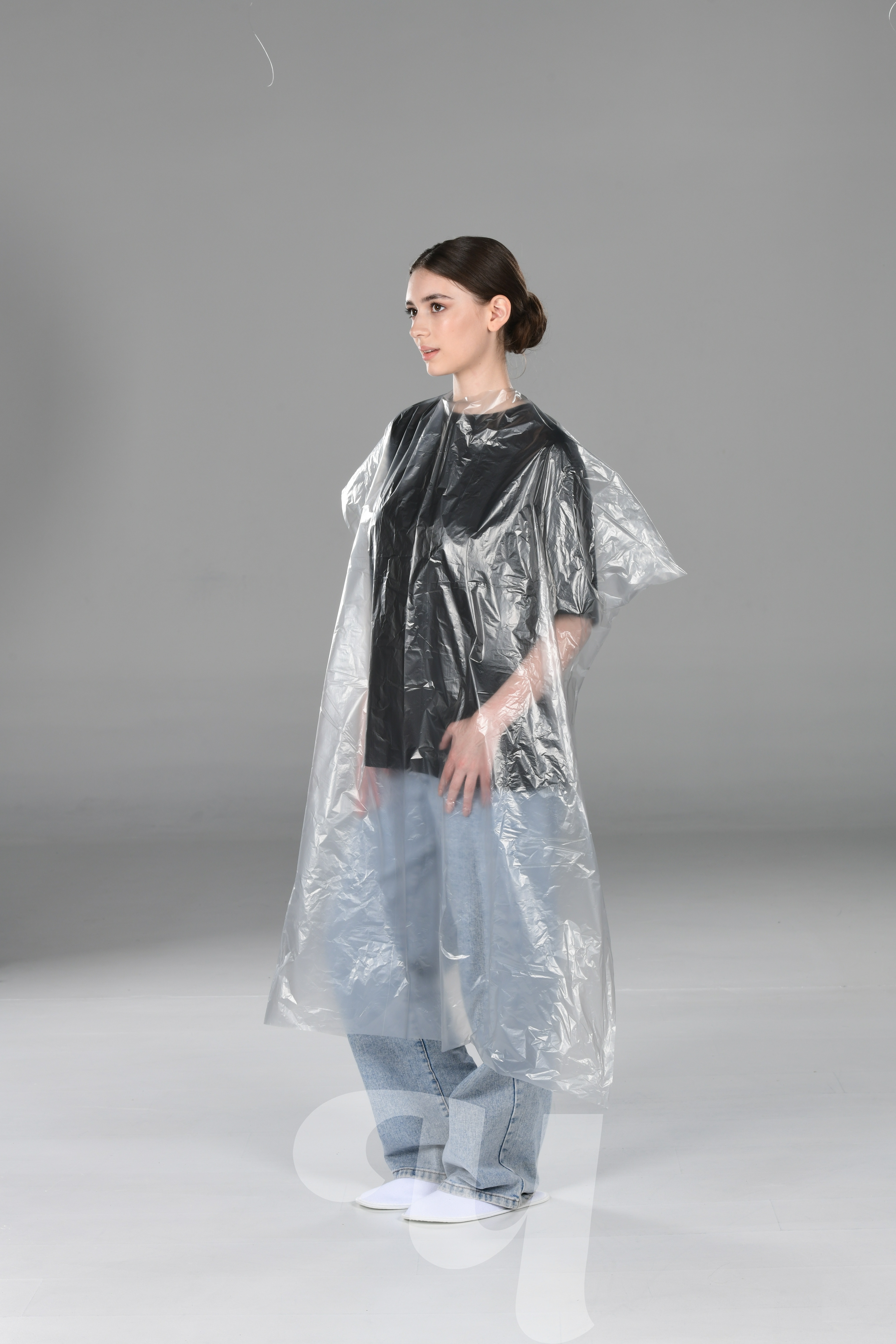 Одноразовые пеньюары из полиэтилена препятствуют попаданию воды, краски, лаков или других косметических веществ на одежду клиентов. Используются во время стрижек, окрашивания или химической завивки волос. Пеньюары стандарт относятся к базовому бюджетному варианту. Толщина - 15 мкм.