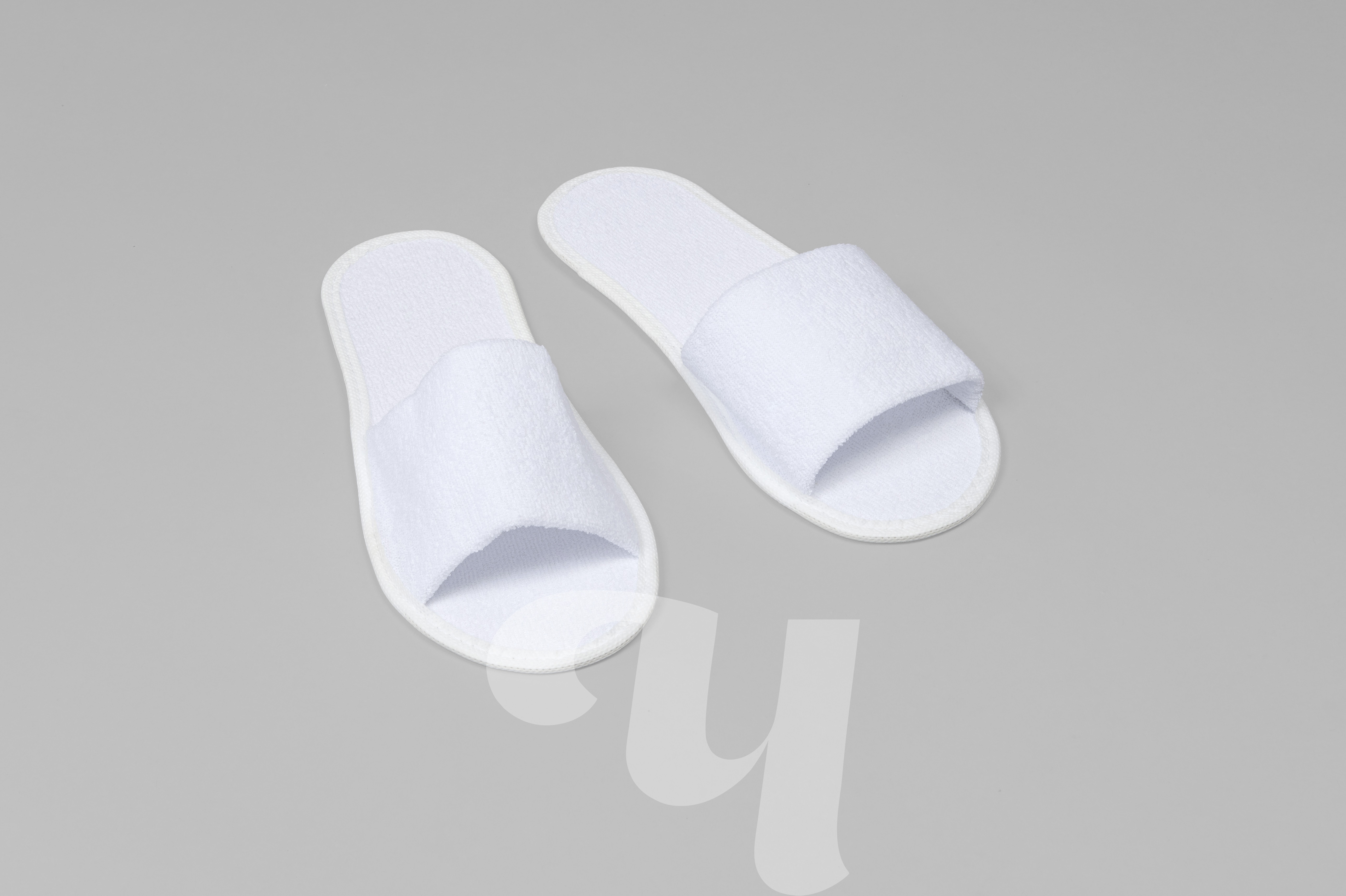 Тапочки махровые с открытым мысом, Белый, 1 пар/упк