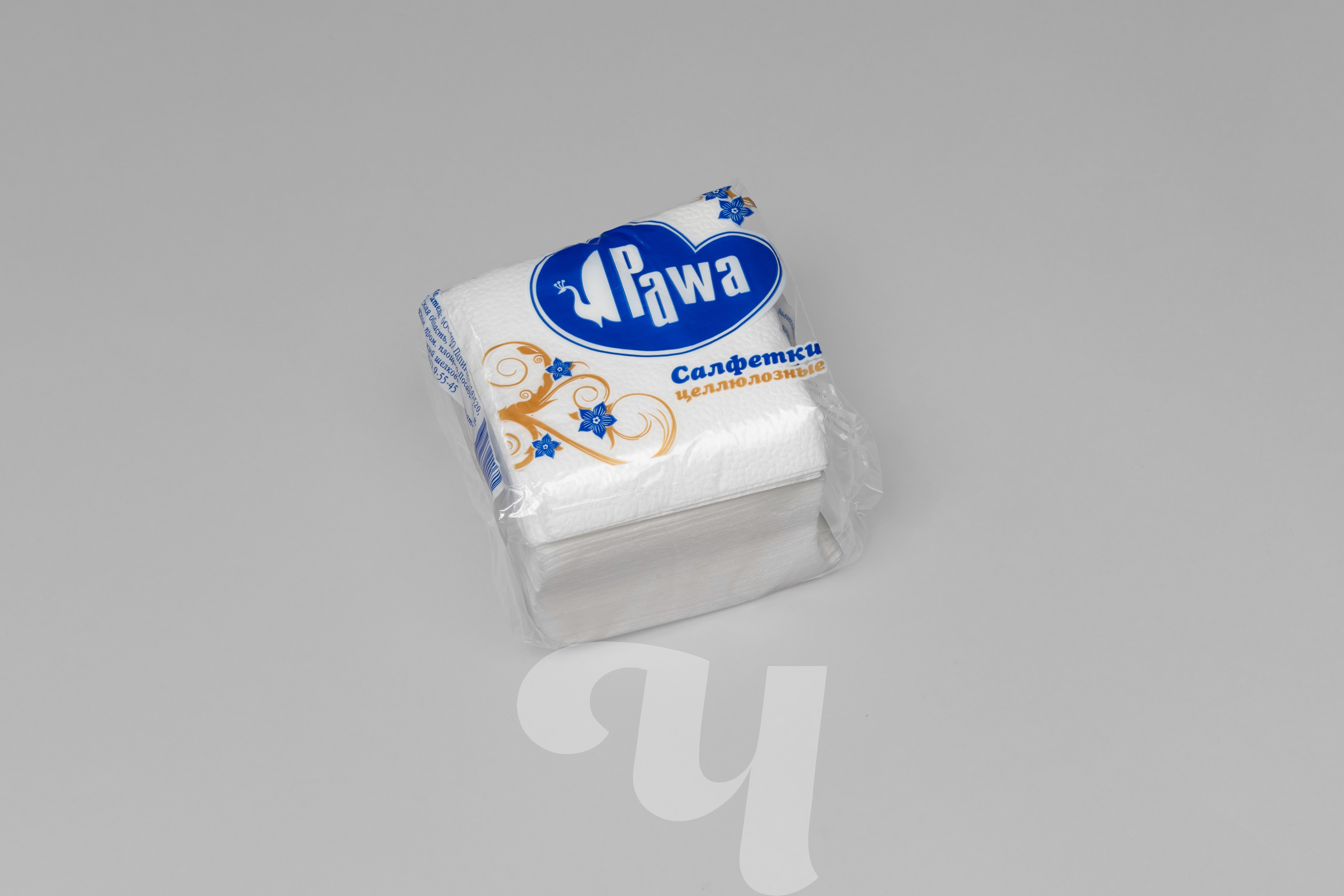 Салфетки бумажные однослойные PAWA, 24х24 см, белый, 100 шт/упк