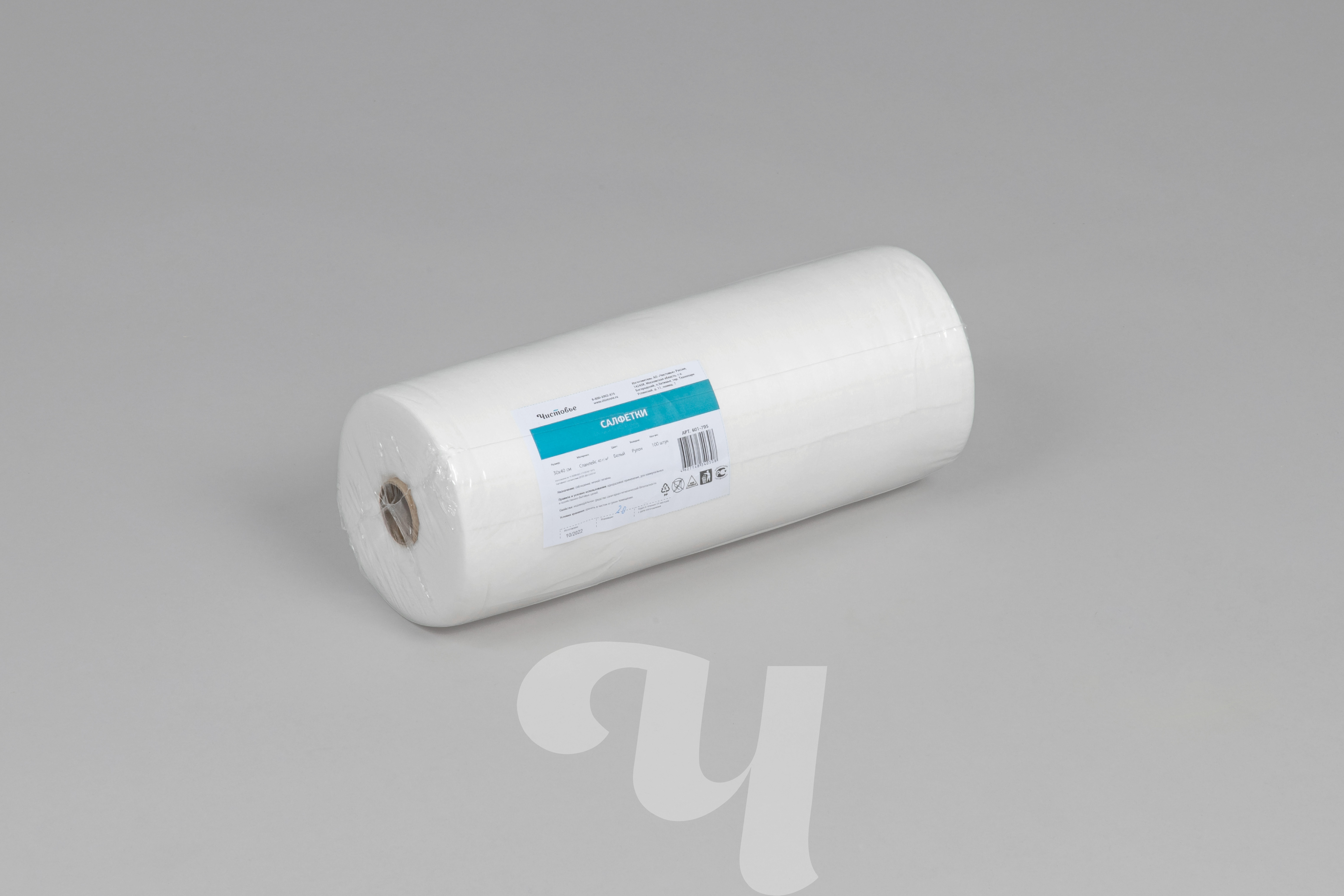 Салфетки из спанлейса в рулоне с перфорацией, 30х40 см, белый, 100 шт/упк