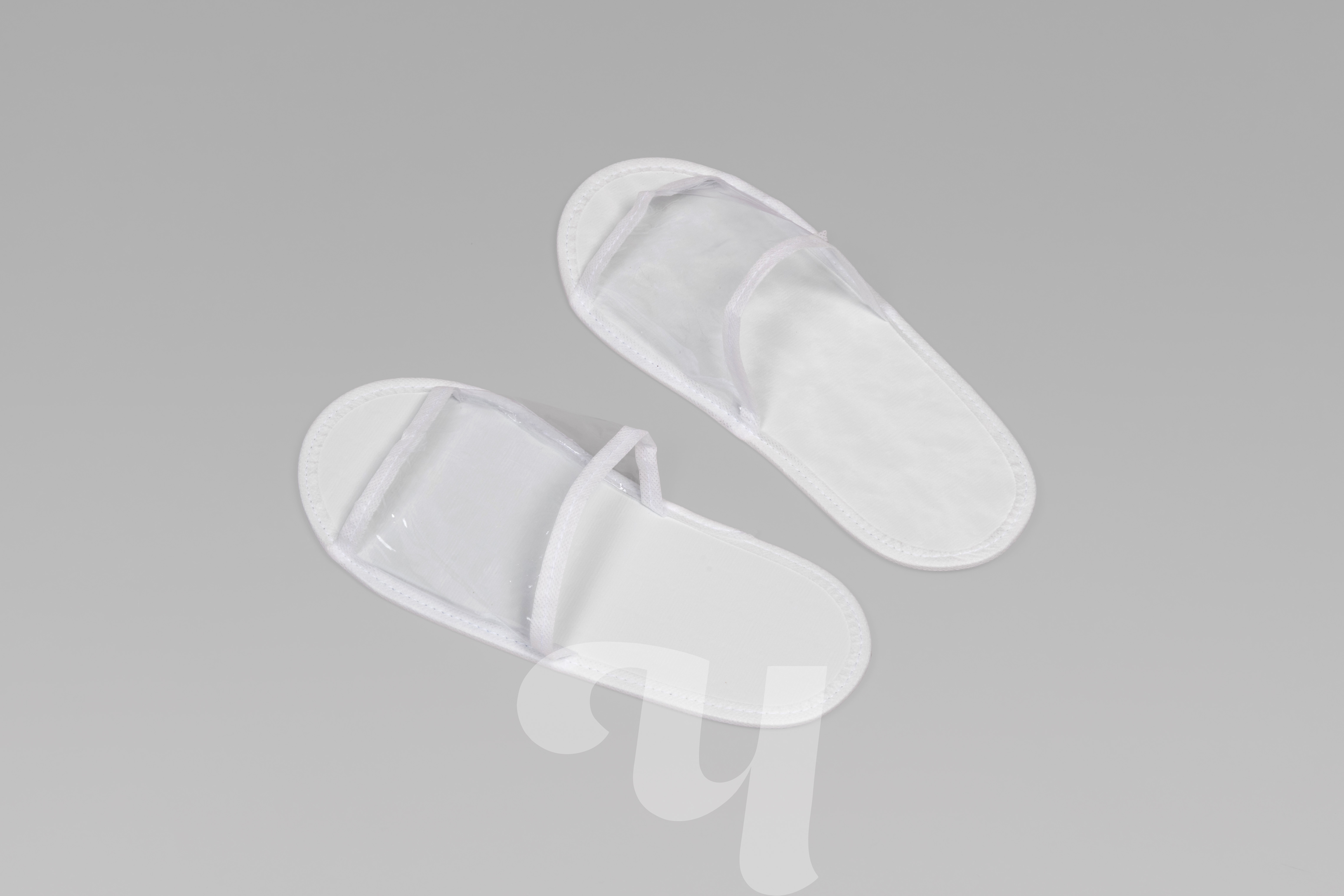 Тапочки для душа с прозрачным непромокаемым верхом. Состав: подошва пришивная - ЭВА (2,5 мм), верх - ПВХ (80 г/м2), окантовка - спанбонд (60 г/м2). Предназначены для передвижения по сухому полу, защищают от грибков. Не предназначены для использования на мокром и влажном покрытии. Рекомендуются для использования в банях, саунах, бассейнах и фитнес-центрах. Индивидуальная упаковка. Левый/правый. Размер до 42-го.