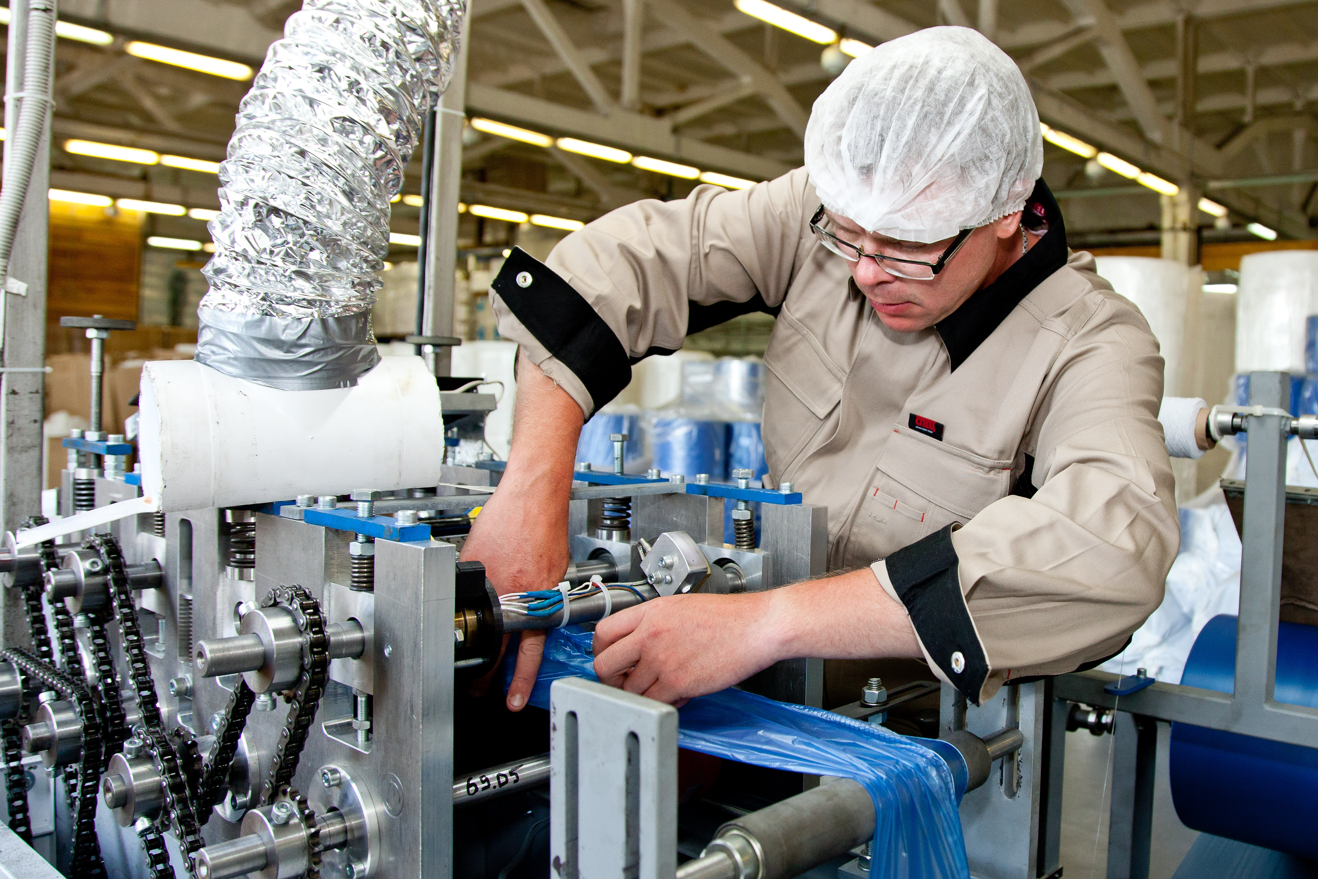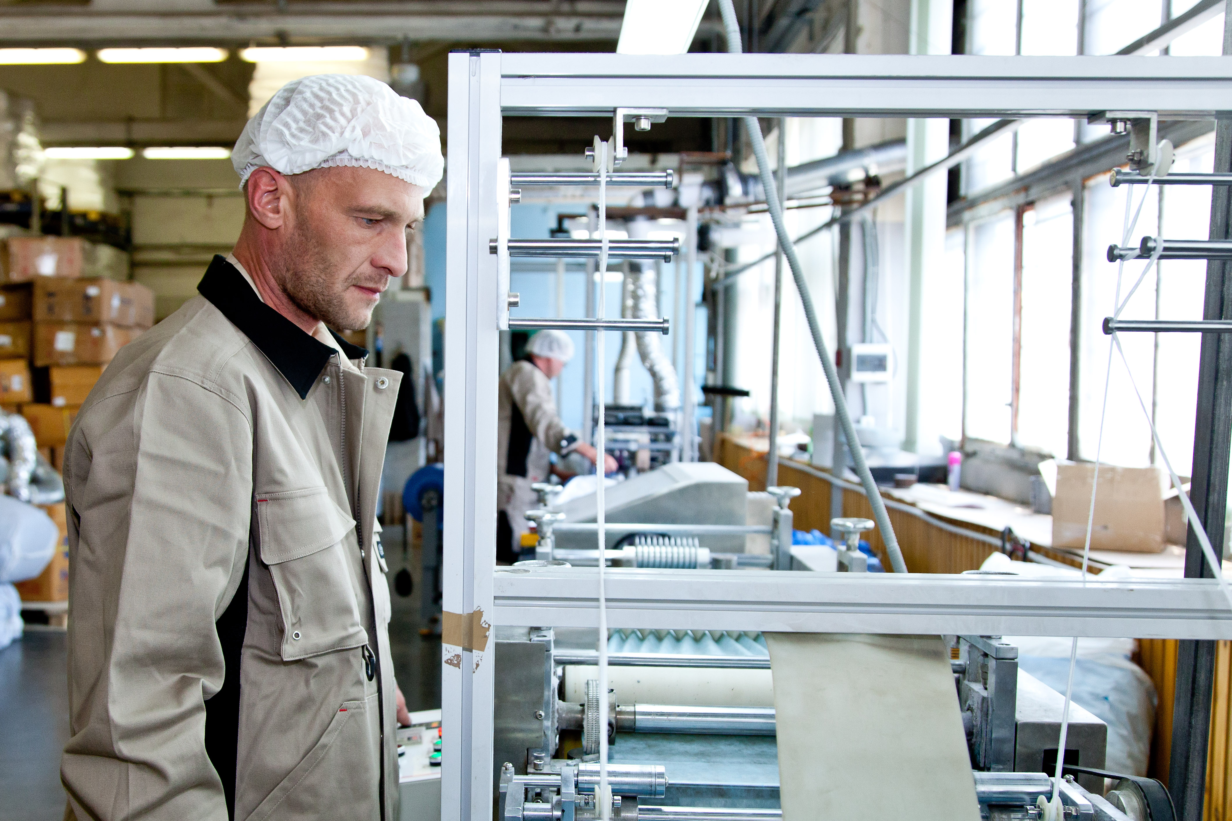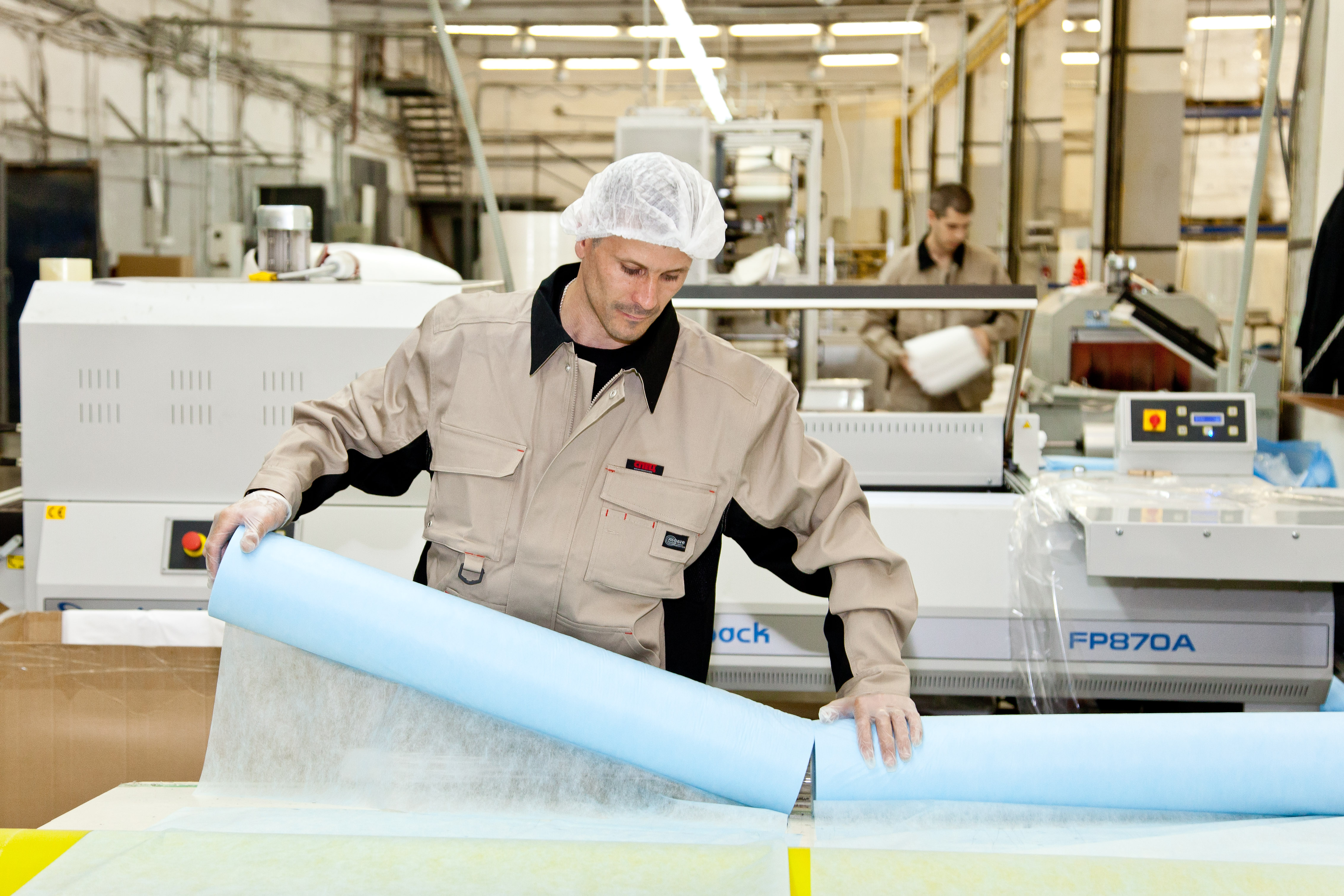 Наша техническая база позволяет производить собственное сырье: SMS, спанбонд, полиэтилен различных плотностей. Мы используем современные линии по пошиву, автоматизированные линии для разрезки, укладки и упаковки, а также быстро настраиваемые прессы.